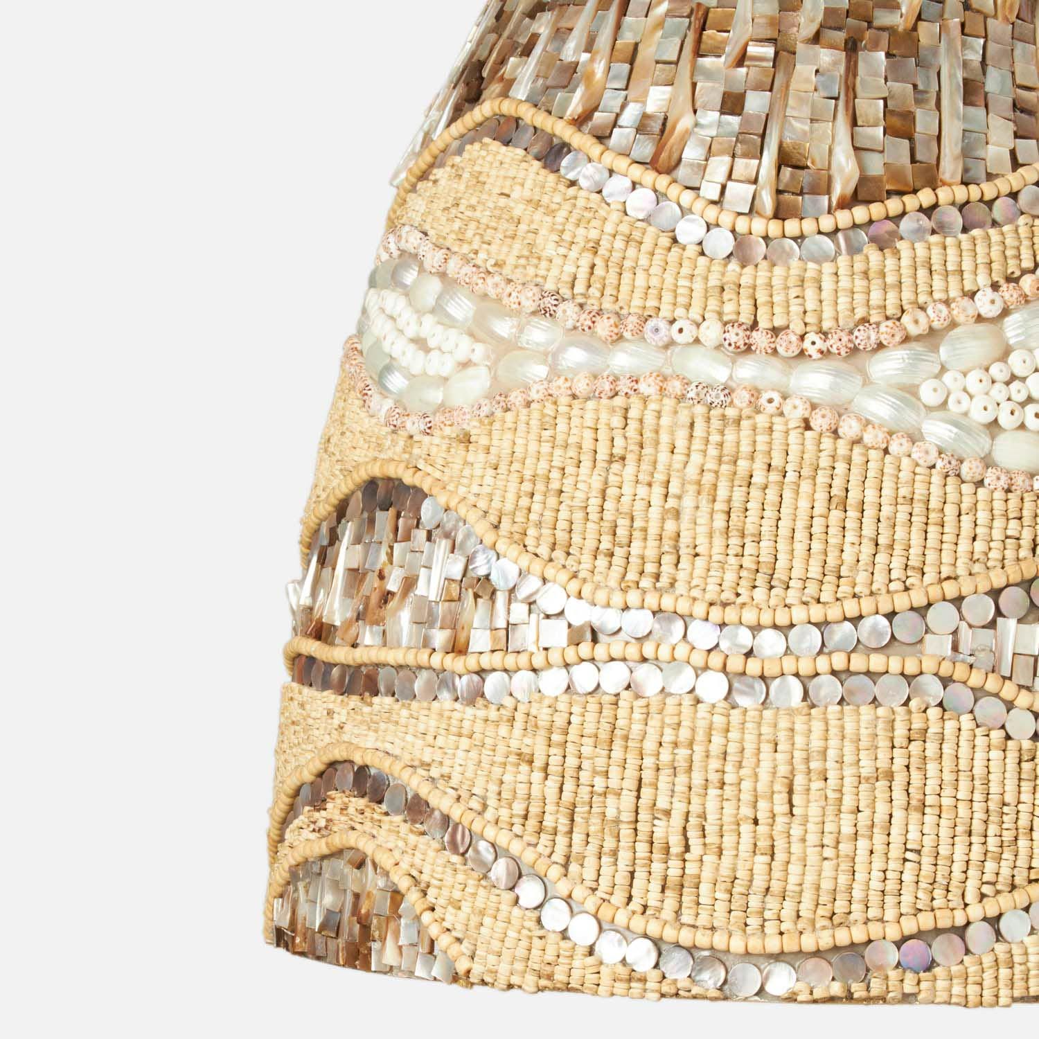 - With scores of coco beads, mixed seashells, and pieces of mother of pearl, Bianca's resplendent mosaic shade dazzles.