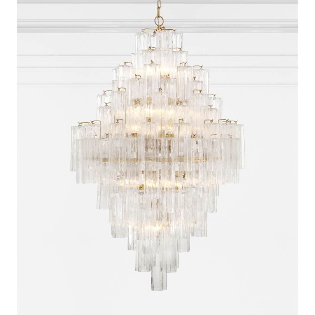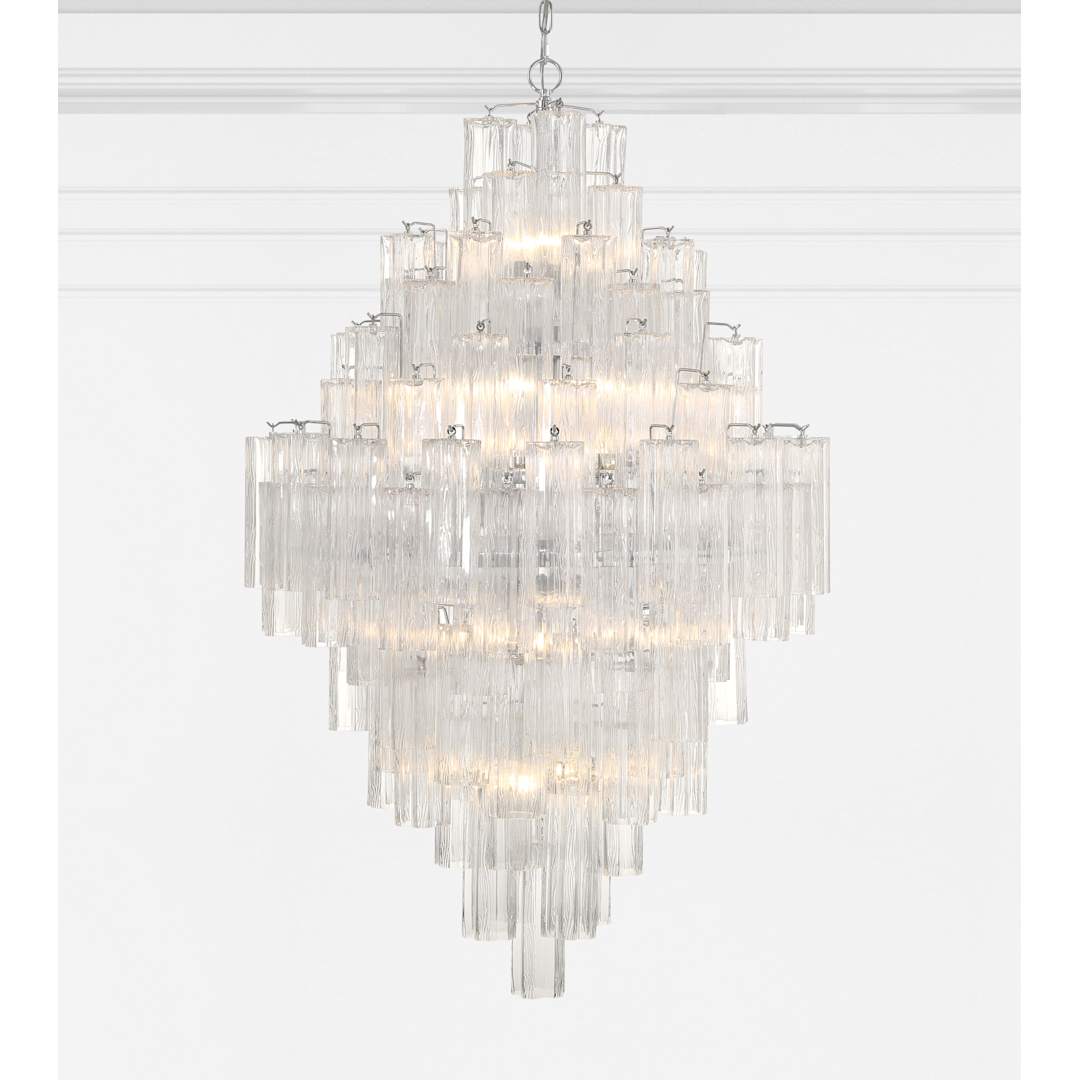 - This modern fixture gives maximum light output either as a chandelier or a ceiling mount