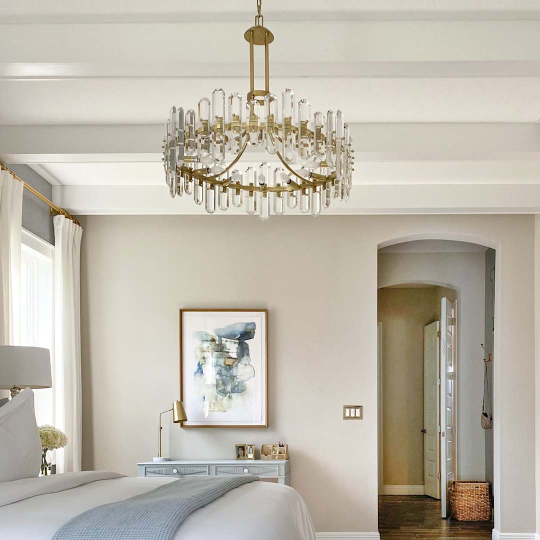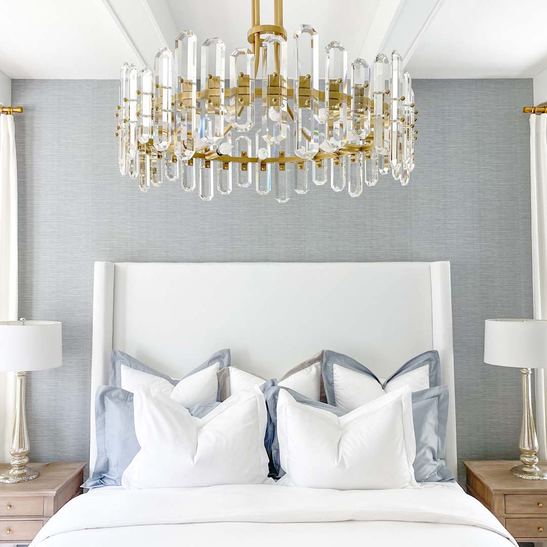 The Bolton Collection exudes glamour and luxury when placed as a focal point in the room. The varying sized faceted crystal panels are secured to a steel drum frame. The crystal prisms reflect beautiful light that creates an endless sparkle.