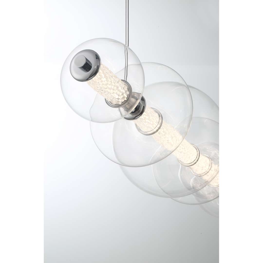 A fascinating globe fixture, Atomo offers a unique and proprietary LED lamping called Crystal Pitch. Faceted crystal gears surround the LED light source to emit a spectacular refraction within the glass globe.