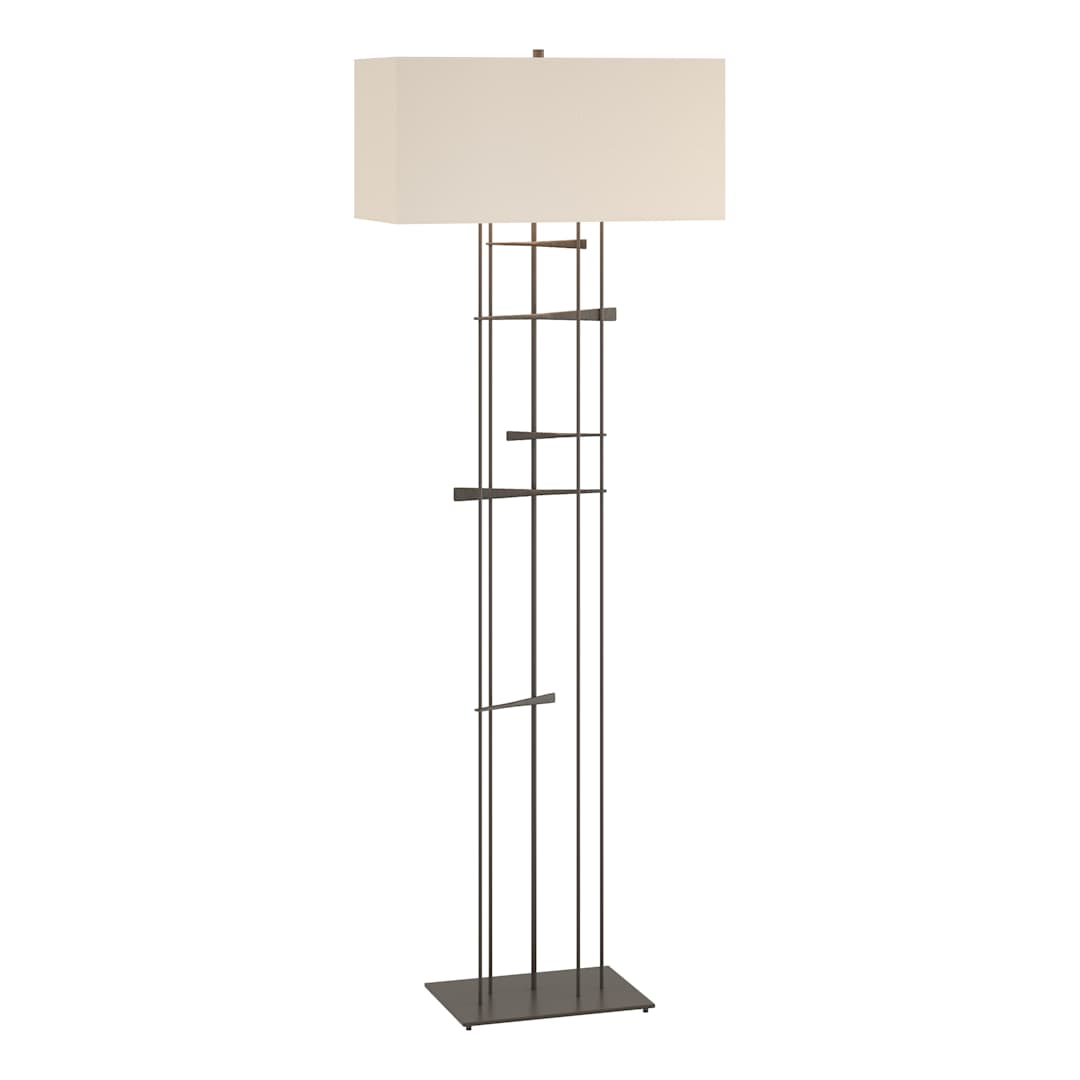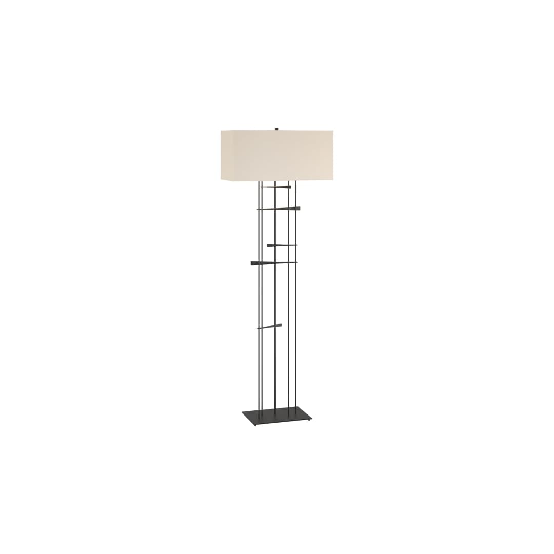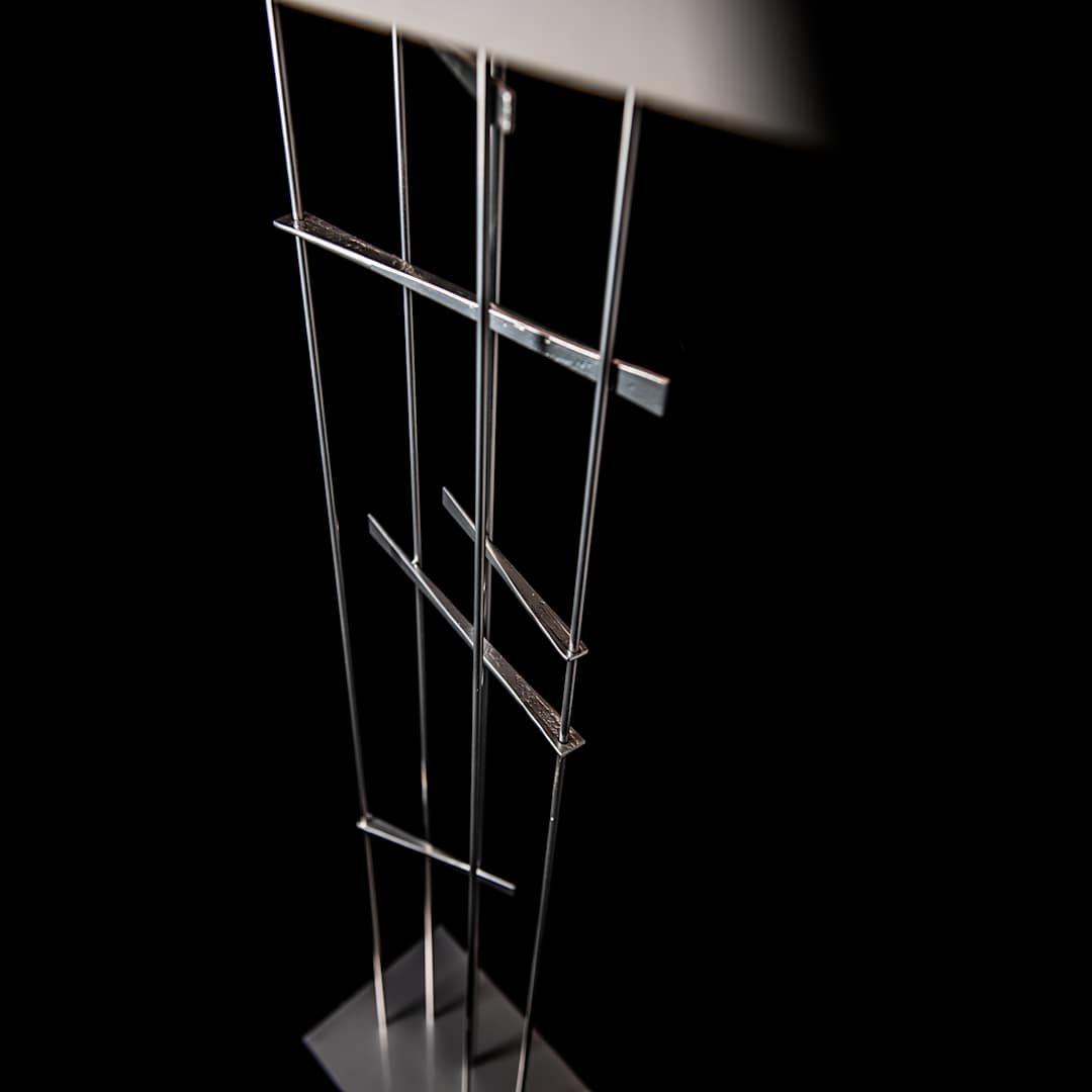 A cavaletti is the support and bar horses jump during competition. But you don't have to like horses to love this floor lamp. Each piece is created from steel square bar stock heated in Hubbardton Forge's forge, and skillfully drawn out to a taper before the pieces are interlocked. All Hubbardton Forge products are hand-crafted to last one at a time in Vermont and backed by a Lifetime Limited Warranty.