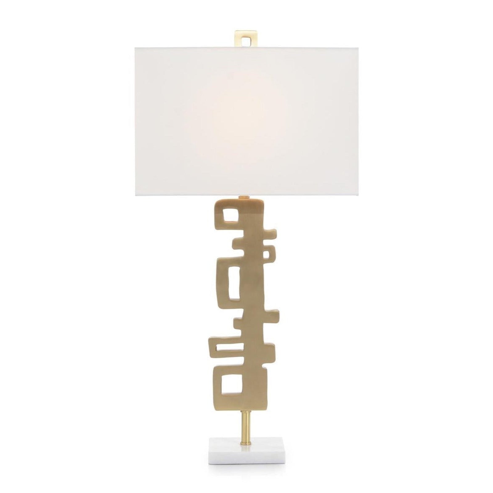 - This abstract table lamp combines design and a modern silhouette to create unique lamp body and finial and is mounted on a white marble base.