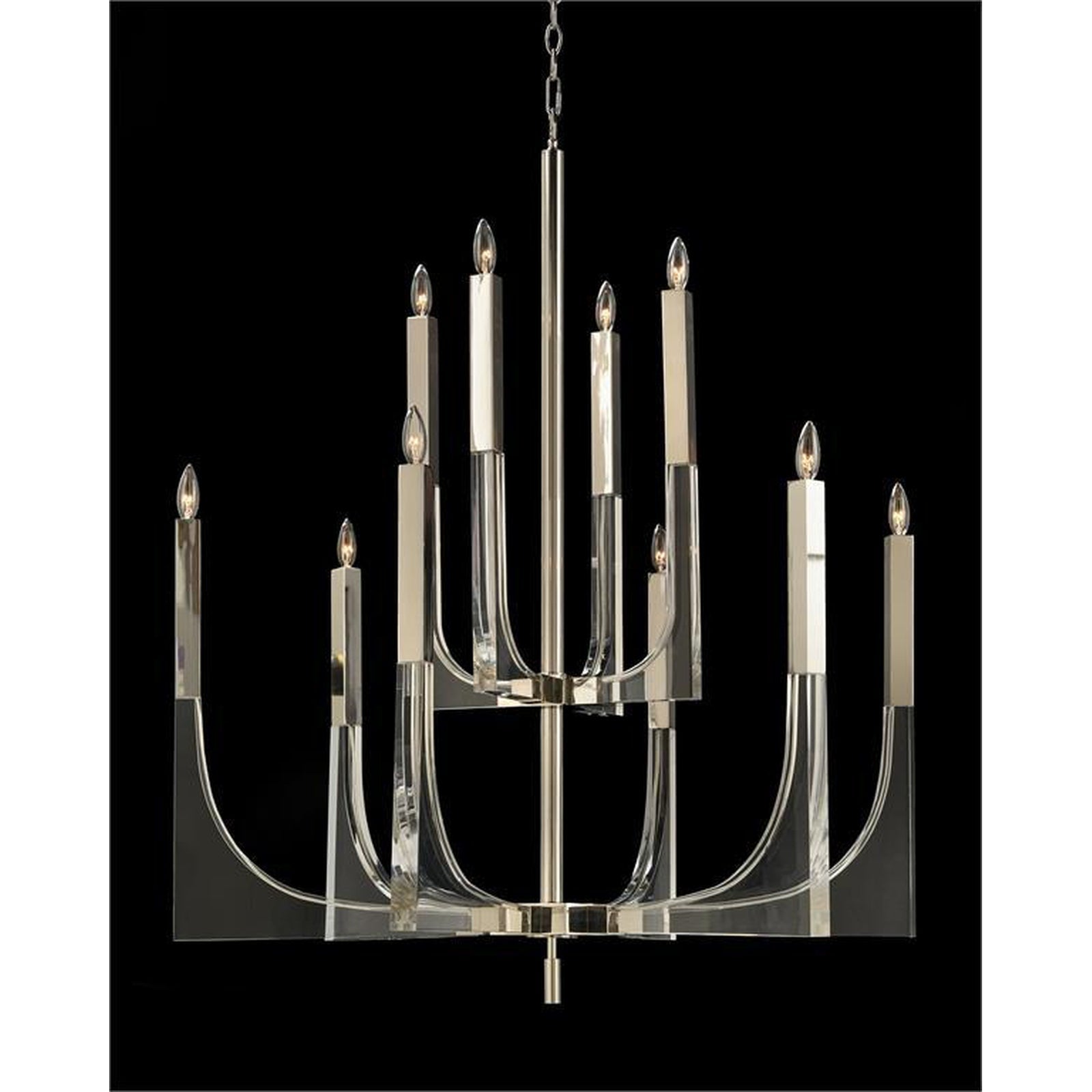 - Classic form meets graphic modern design in this acrylic and polished nickel, ten-light chandelier with two tiers