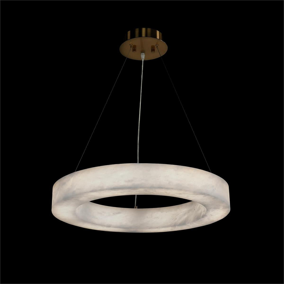 • The Alabaster Halo Pendant is a gorgeous light fixture that blends natural materials with chic contemporary design