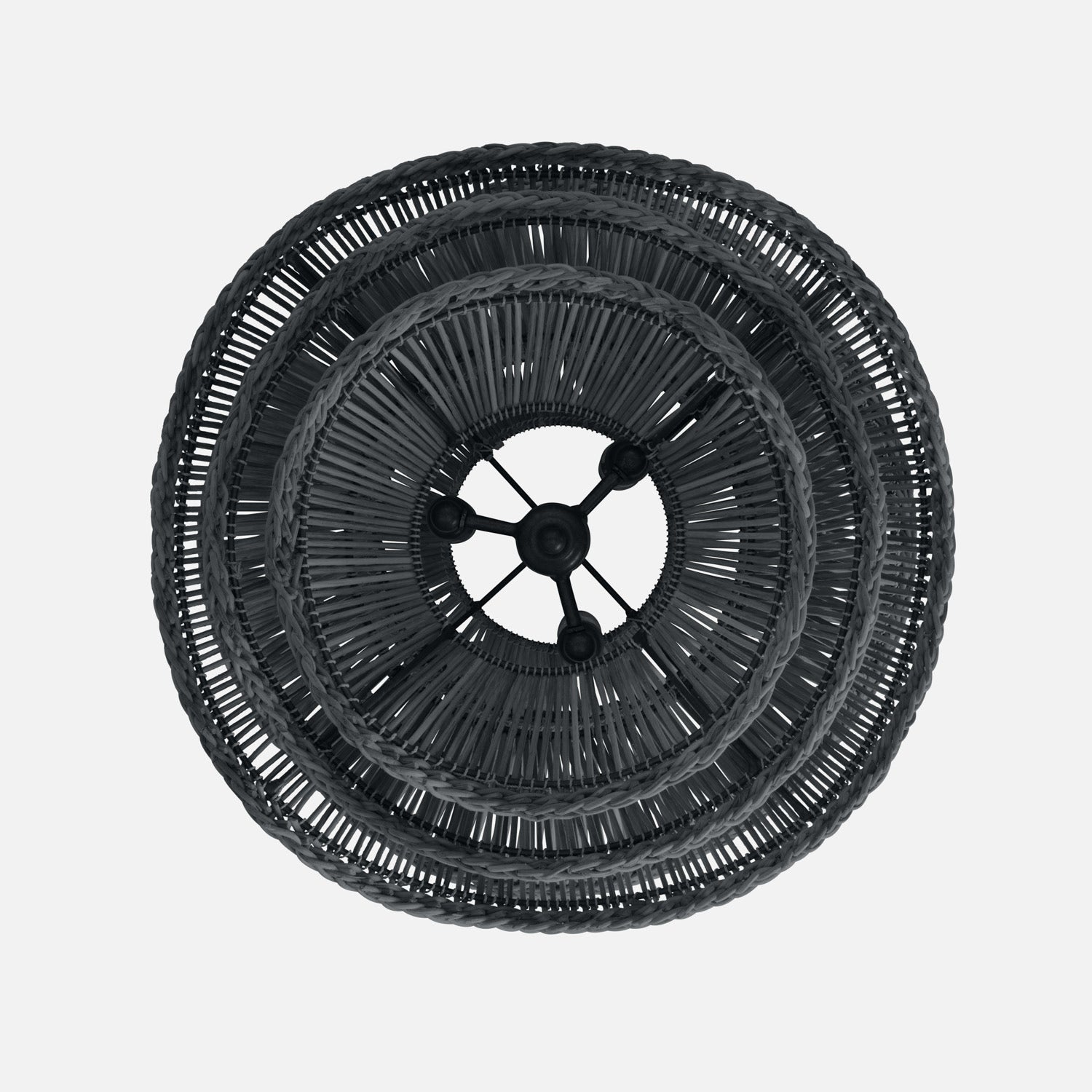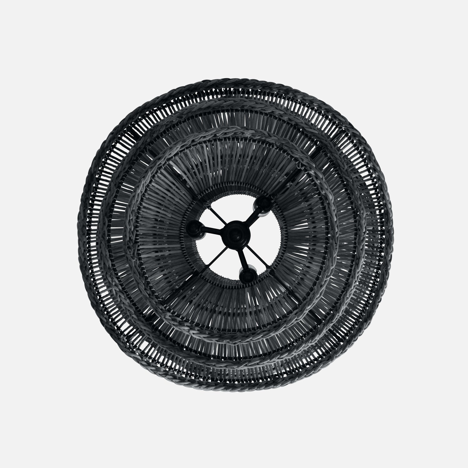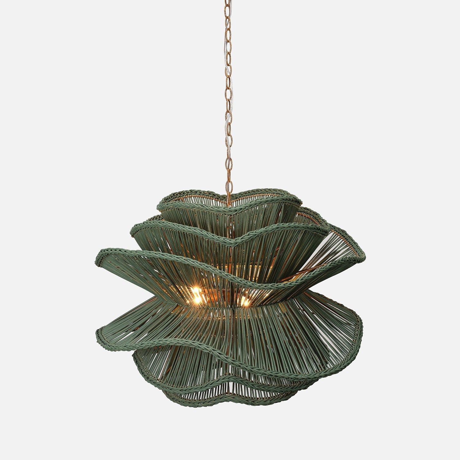 - In an abstract shape inspired by flowers, six layers of rattan, whose densely braided edges coax them into waves, provide a soft diffused light.