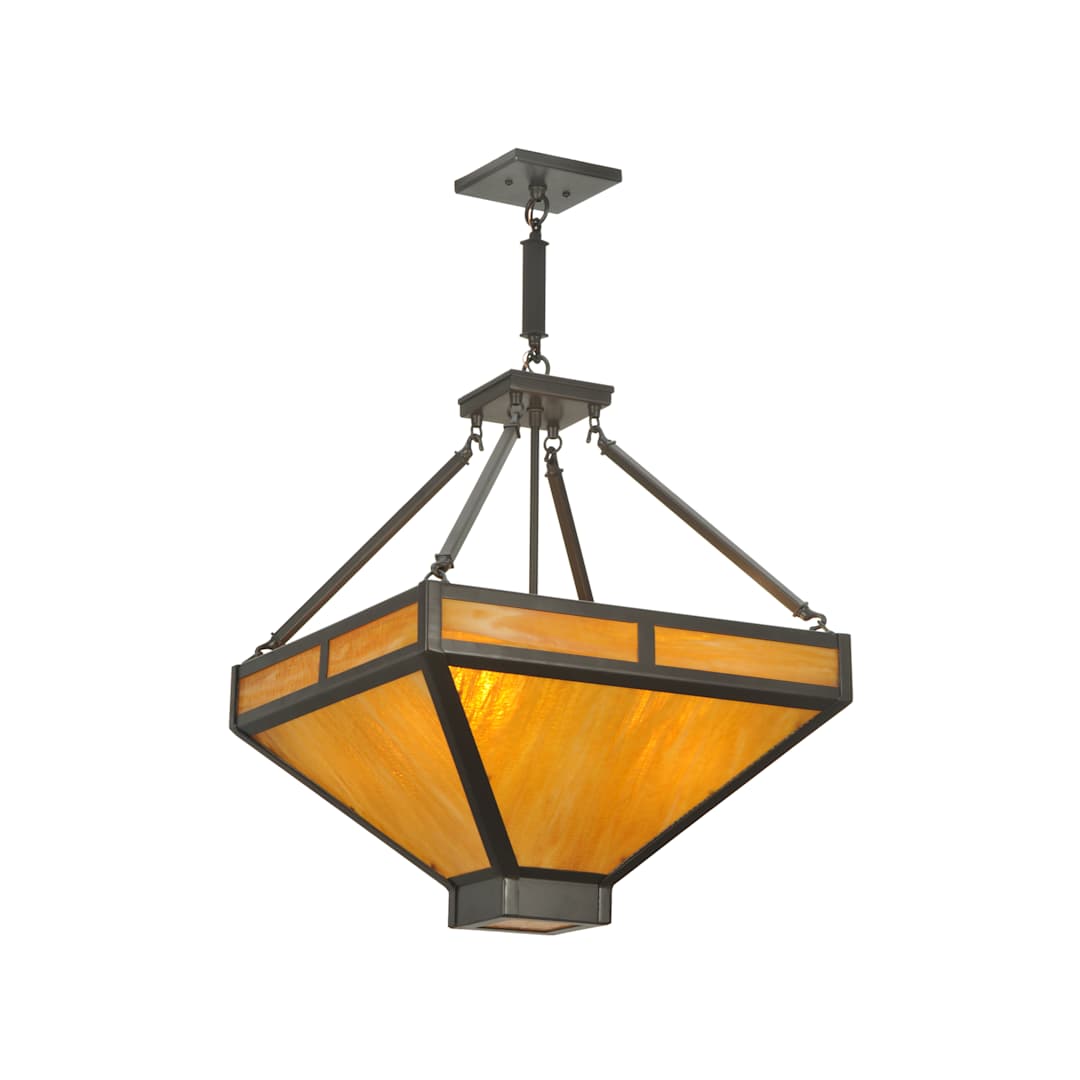 Dashing and one-of-a-kind, the 18" Square "T" Mission Inverted Pendant by Meyda Tiffany is a wonderful way to add something new and different. Decorate your home with this excellent pendant utilizing 100 watts per bulb and a pyramid shaped shade.
