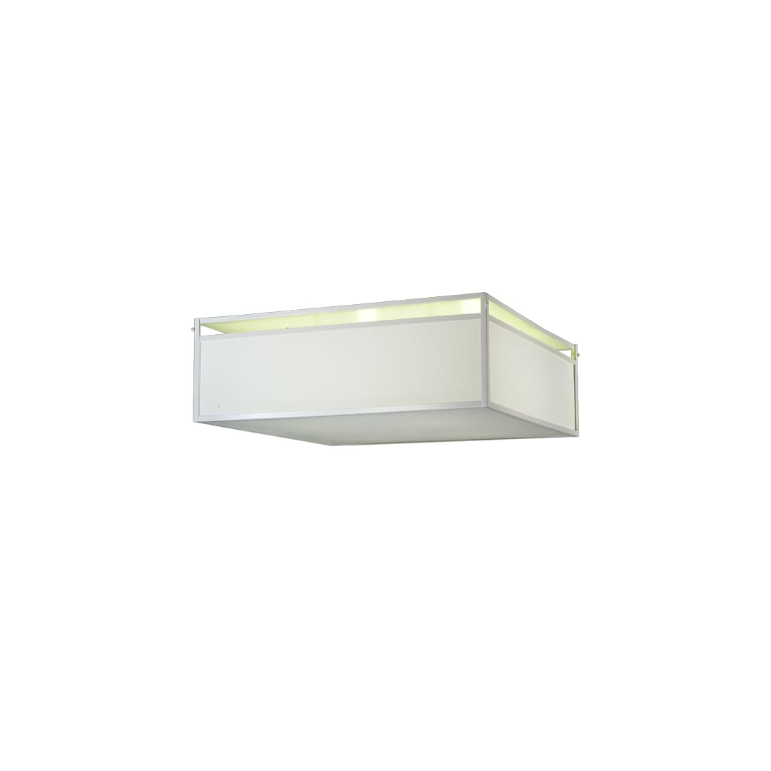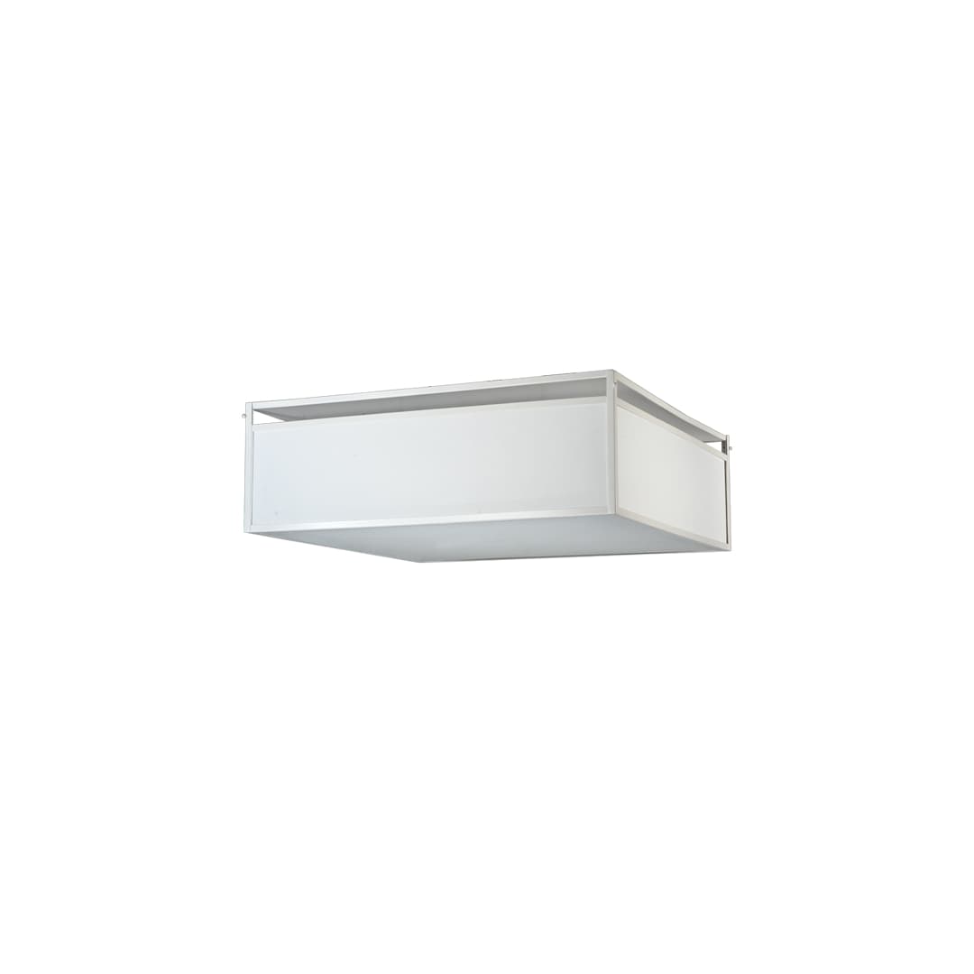 Rendering a clean and stunning architectural look, this streamlined geometric design features a White Textrene that is complemented with Satin White finished hardware and frame. This fixture is custom crafted in the USA.