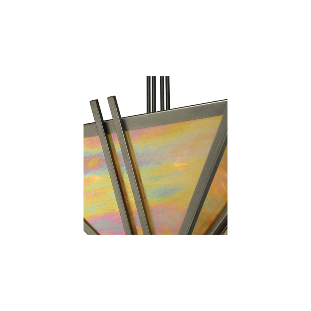 This stunning Mission styled ceiling fixture. A beautiful Beige Iridescent art glass shade is complemented with an architectural frame and hardware in a Blackened Pewter powder coat finish. Handcrafted in our 180,000 square foot manufacturing facility in Yorkville, New York at the foothills of the Adirondack Mountains. Custom sizes, styles and colors available.