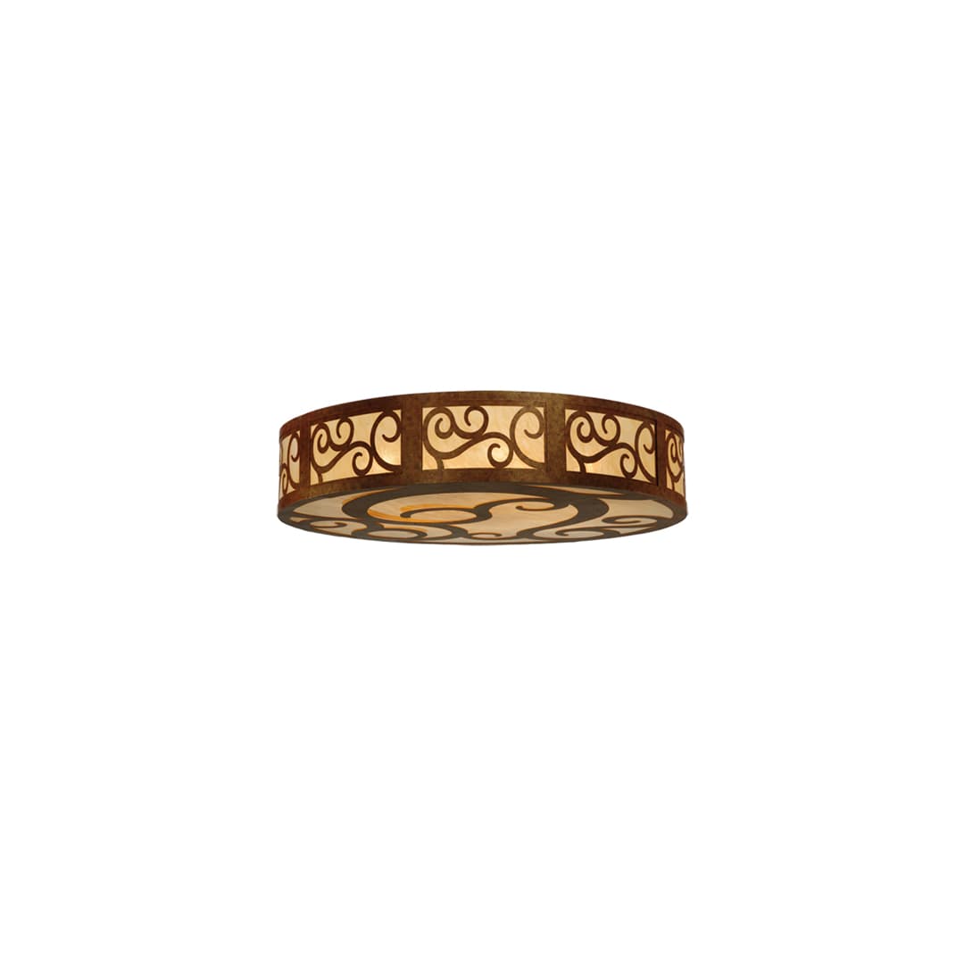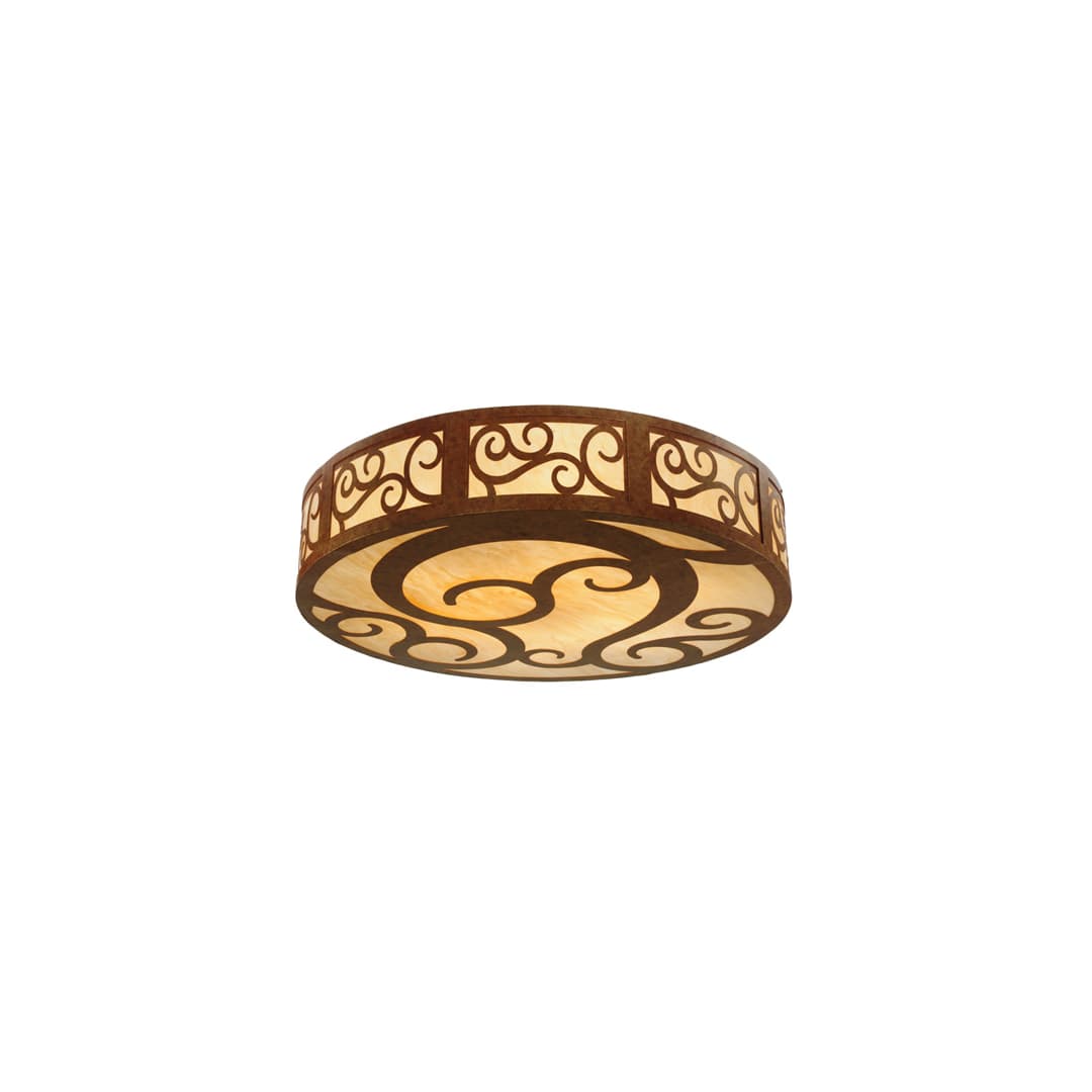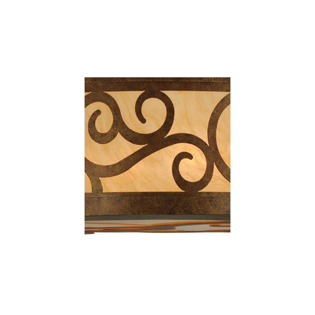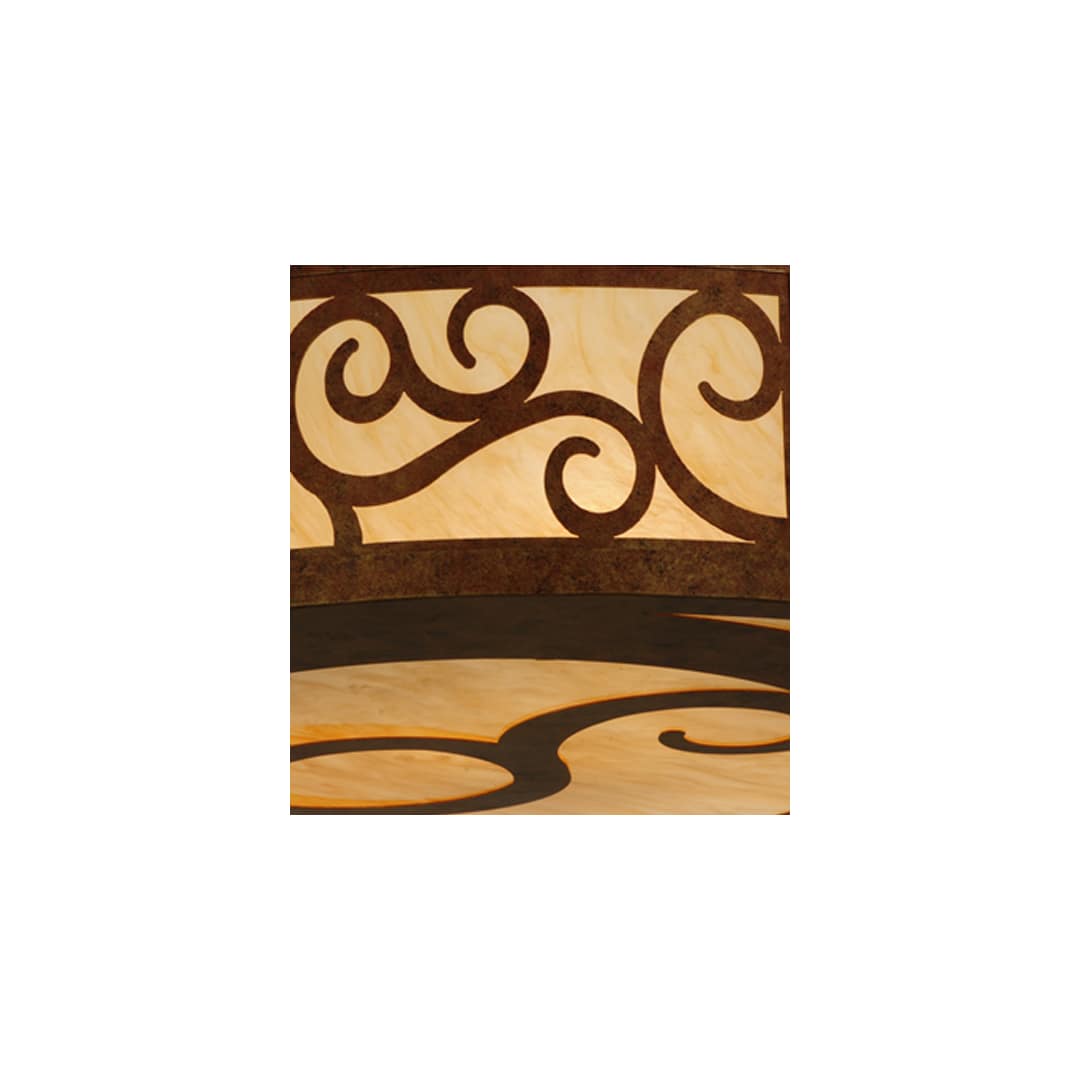A touch of warm opulence is blended with elegant scroll-like styling. This ceiling fixture offers a lovely transitional style, which is handcrafted with decorative accents and hardware featured in a stunning Autumn Leaf finish. The impressive Dean fixture integrates a Sahara Taupe Idalight diffuser, which projects beautiful ambient illumination. Handcrafted in our 180,000 square foot manufacturing facility in Yorkville New York. This Grand styled fixture is available in custom sizes, styles, colors and dimmable energy efficient lamping such as LED.