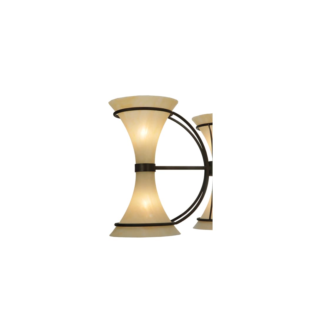 Custom styled for a distinctive architectural look, Chronos unveils three Trumpet styled shades in Sahara Taupe Idalight, which are featured in an elaborate steel frame in a Classic Rust finish. This fixture was created by the hands of artisans at our manufacturing facility in Upstate New York in the USA. Custom sizes, styles and colors are available, as well as dimmable, energy efficient lamping options.