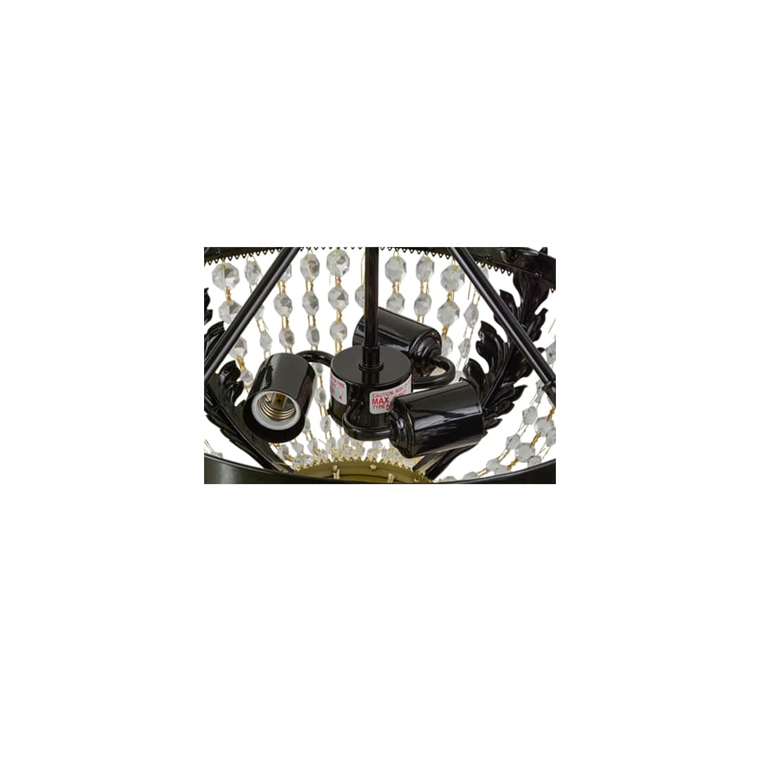 Bejeweled with lovely clusters of faceted crystal glass beads emanate brilliant radiance and luxury for any setting, the fixture features two lower rings adorned with Gold Metallic finished leaf accents and enhanced with a matching leaf ornate frame and hardware featured in a Mirror Black. This fixture is custom crafted in our manufacturing facility in the USA. Custom styles, designs and sizes are available.