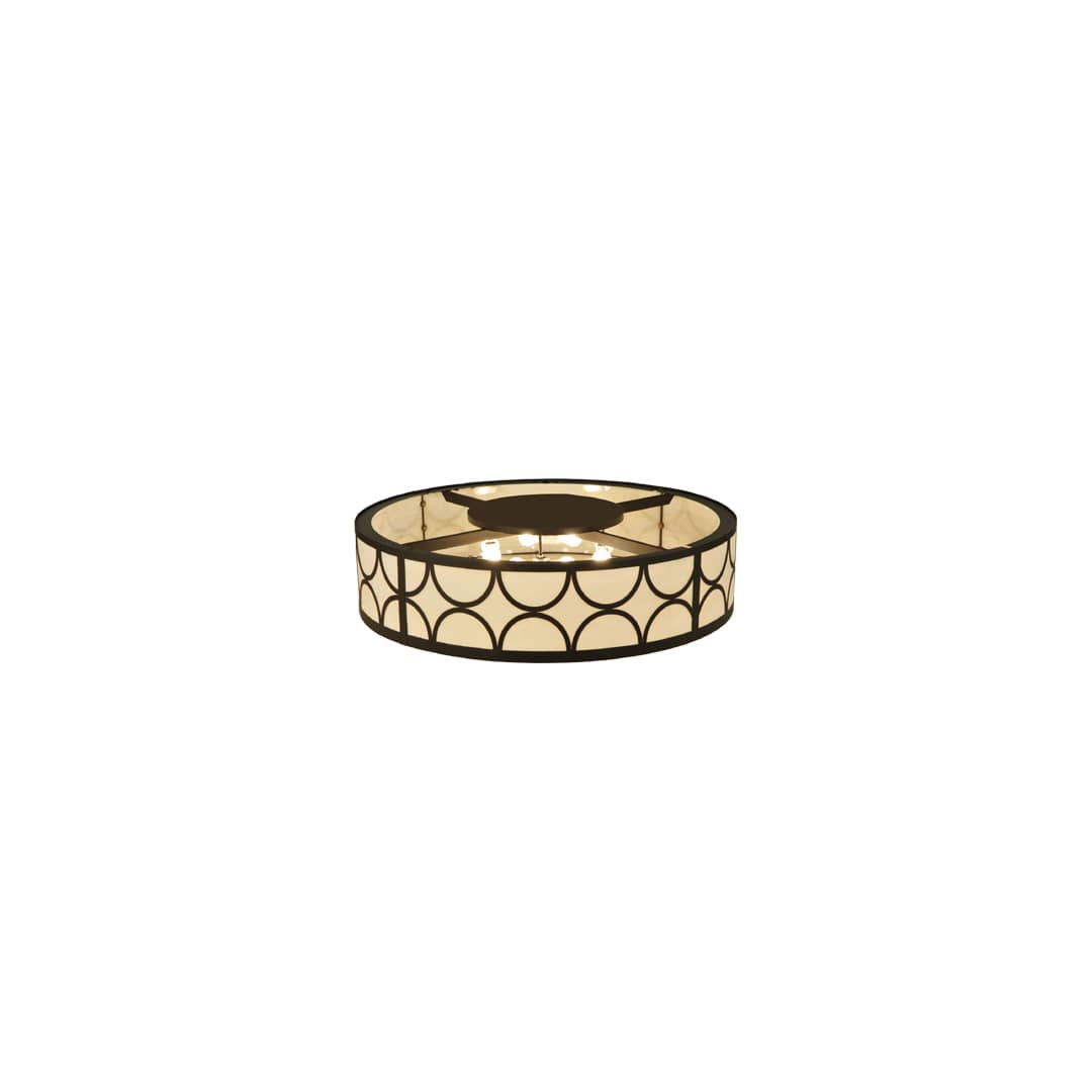 This alluring ceiling fixture with semi-circular repeat motifs and a curved shape is reminiscent of the high art of the Art Deco era. This flushmount features a Sahara Taupe Idalight diffuser and is enhanced with an Oil Rubbed Bronze finish. Handcrafted by highly skilled artisans in our 180,000 square foot manufacturing facility in Yorkville, New York. Shade colors, metal finishes and fixture sizes can be customized to your needs.
