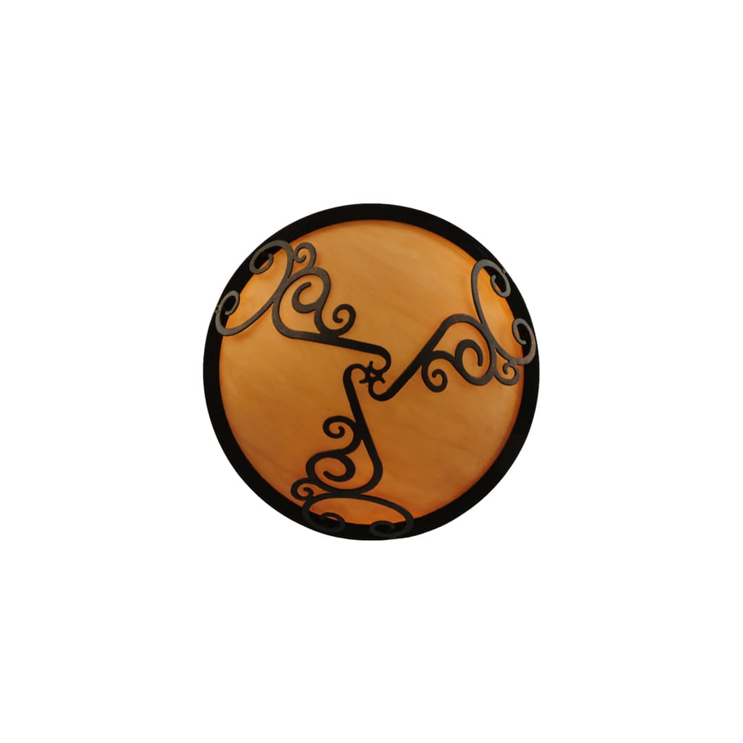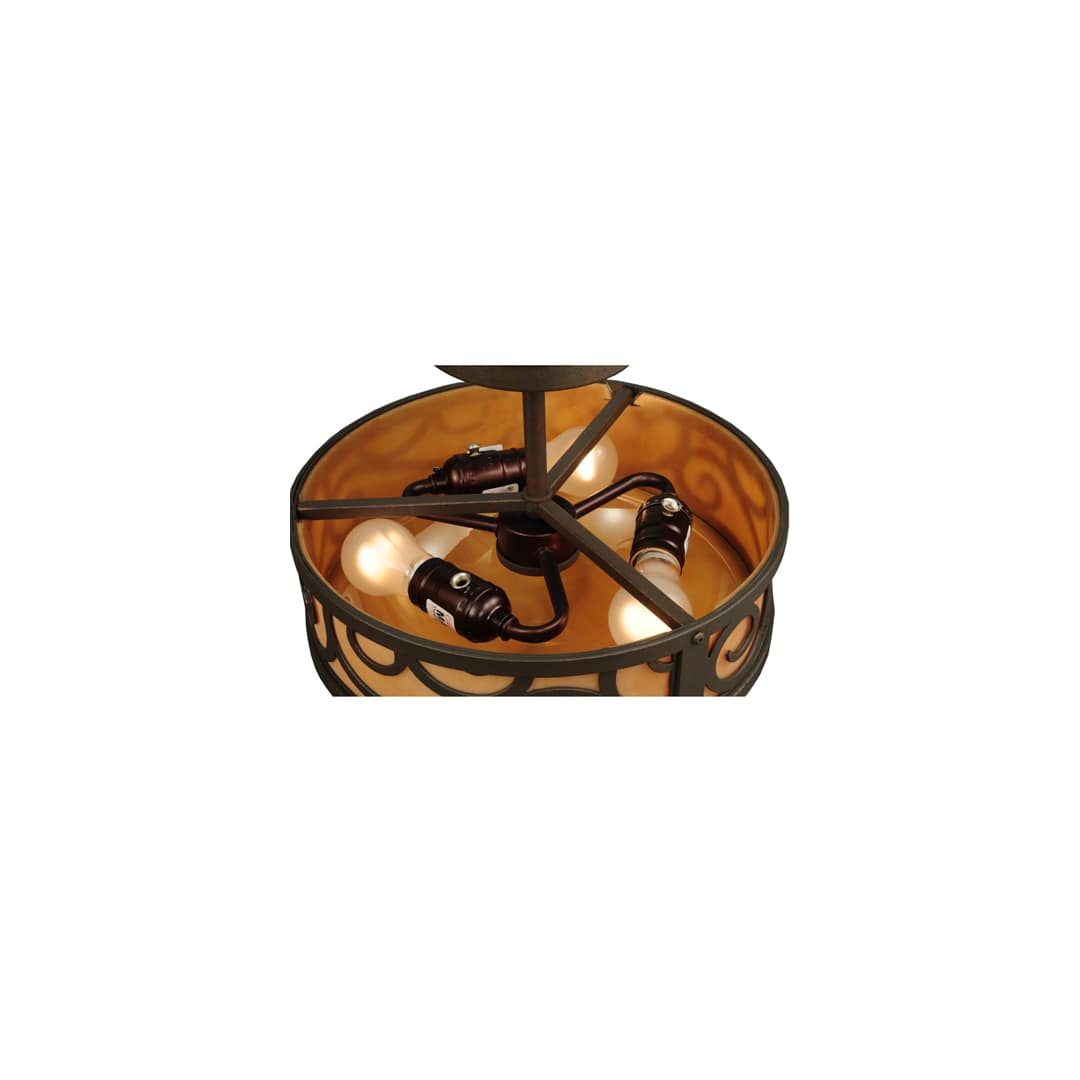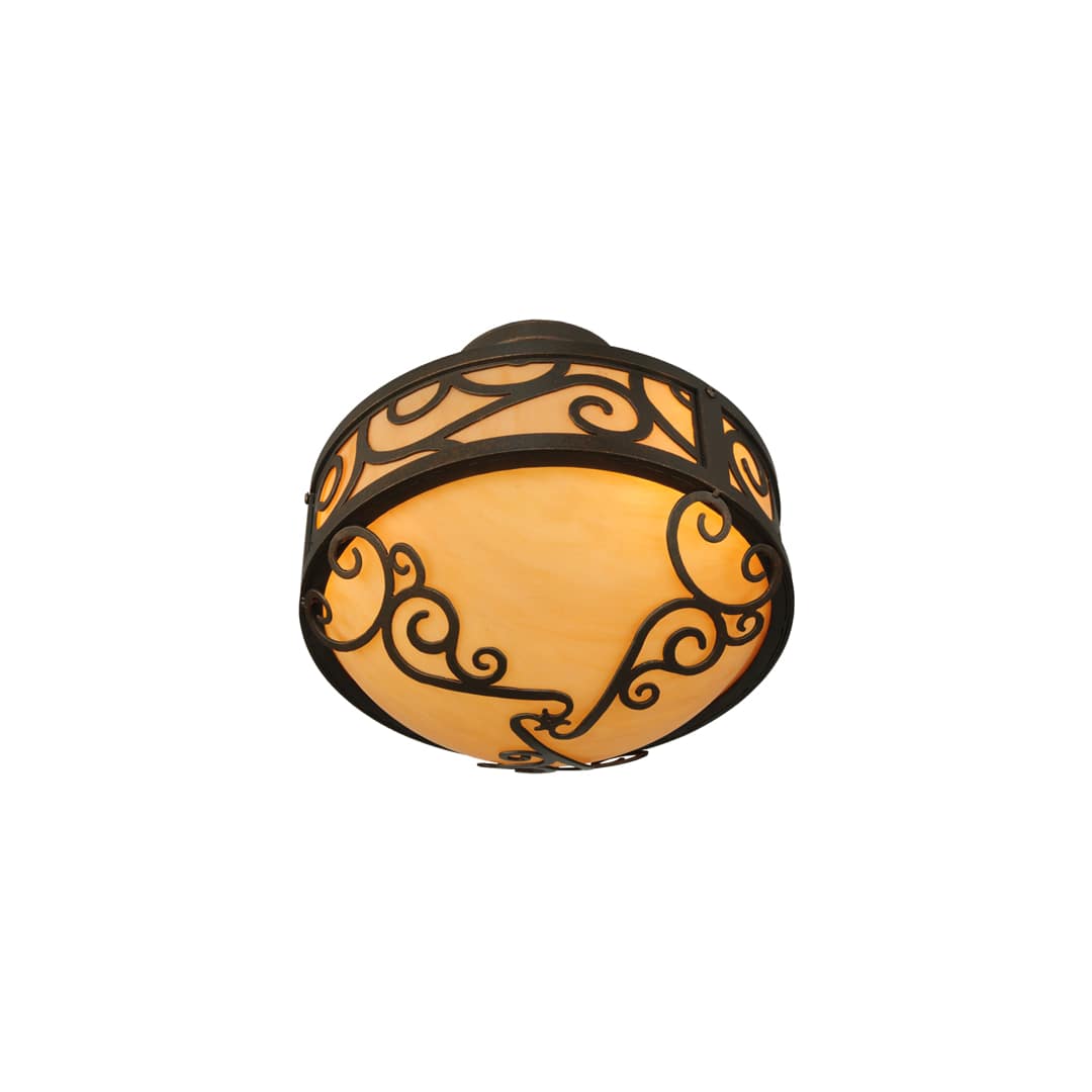A touch of warm opulence is blended with elegant scrolled metalwork that evokes a handcrafted look. This ceiling fixture offers a lovely transitional style featuring stunning Amber Quartz Idalight. The diffuser is complemented with a Gilded Tobacco finish. Custom crafted in our 180,000 square foot manufacturing facility in Yorkville, New York. Lens colors, metal finishes and fixture sizes can be customized to your needs.