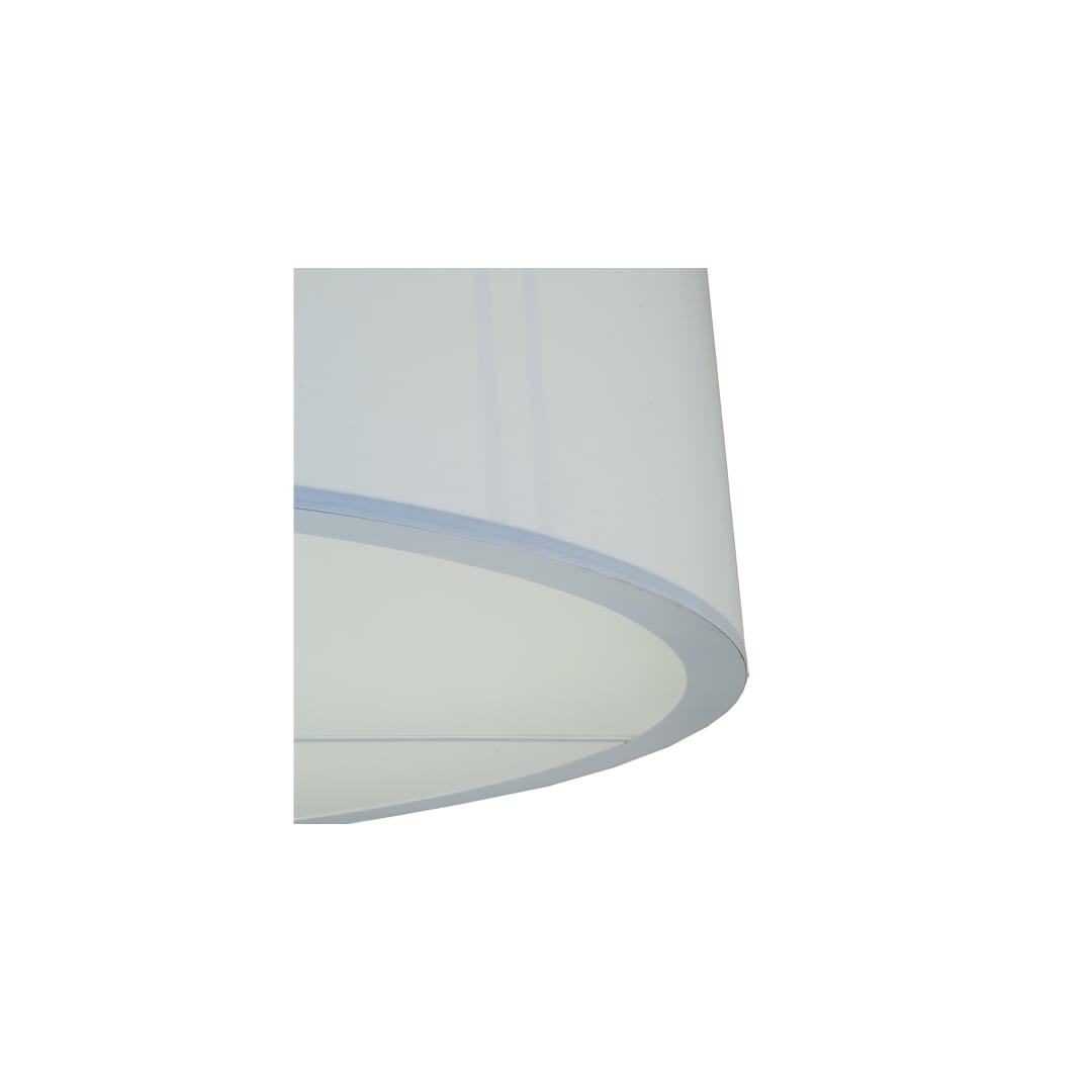 Designed with a sophisticated rotund profile, this versatile, elegant ceiling fixture blends with any decor. This clean architecturally designed shade features White Linen Textrene which is enhanced with a Statuario Idalight bottom diffuser and complemented with a frame and hardware in a handsome Satin Nickel powder coat finish. Handcrafted in our 180,000 square foot manufacturing facility in Yorkville, New York, this transitional styled fixture is available in a wide range of custom choices including various designs, colors, sizes and dimmable energy efficient lamping options.