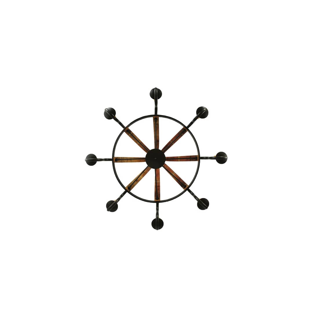 Rustic charm blends tastefully with distinctive character and simplicity. Inspired by Antique Staves traditionally bound by hoops used for beer/whisky barrels and wine casks. This authentic chandelier features a Rusty Nail finish. Our Sustainable lighting offers a choice of Reclaimed Woods or Natural Wood/Metal combinations. Enhanced with 8 Ivory faux candlelights that line up like soldiers at attention in abeyance of the barrel to which they serve. Overall height ranges from 47 to 117 inches as chain length can be easily adjusted in the field. Handcrafted in our 180,000 square foot manufacturing facility in Yorkville, NY. Fixture designs, metal finishes and chandelier sizes can be customized.