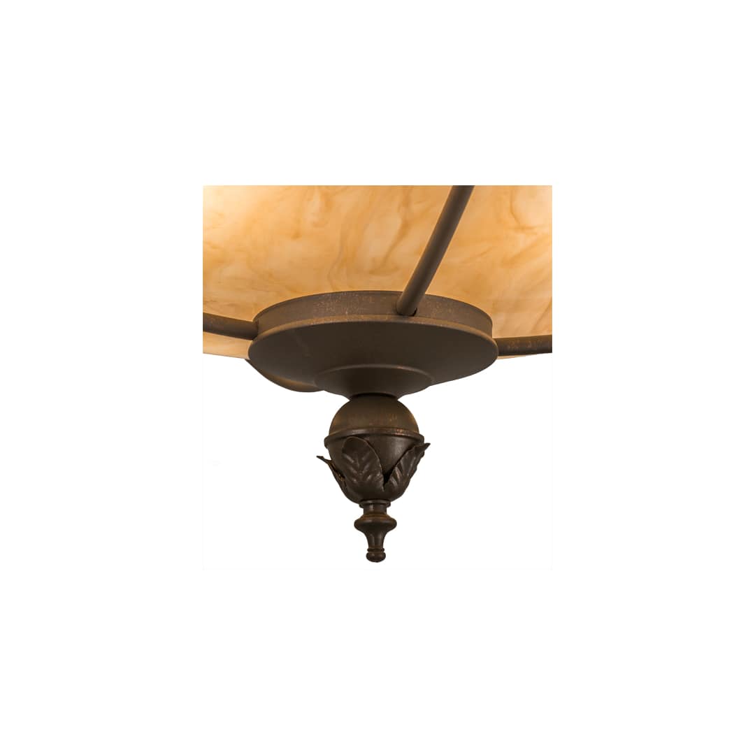 Ancient European scrollwork and rose medallions accentuate this stunning rustic ceiling fixture which features a Sahara Taupe Idalight shade for a marble look. The fixture is enhanced with sturdy, detailed hardware and a classic finial hand finished in Gilded Tobacco. The fixture is ideal for hallways, living spaces and other rooms in both residential and commercial environments. The fixture is handcrafted by highly skilled artisans in our 180,000 square foot manufacturing facility in Yorkville, New York. Options include dimmable LED and other energy efficient lamping, as well as custom sizes, styles and colors.
