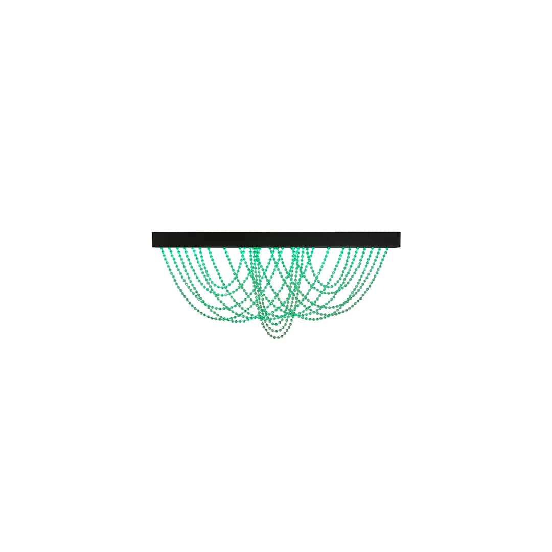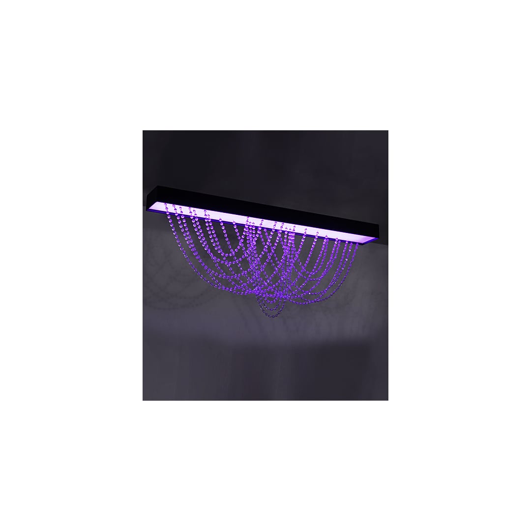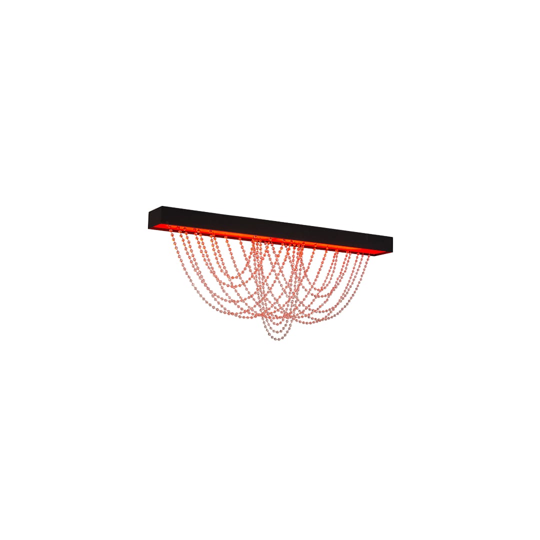Like a vibrant valance of brilliant illumination, Hollander features a rugged Black linear frame that projects color-changing light utilizing Integral RGB LEDs. Swags of Red and Clear Crystal Beads add waves of classic elegance and beauty. Handcrafted in our manufacturing facility in Yorkville, NY, this awe-inspiring ceiling fixture is available in custom sizes, designs and colors. Dimmable lamping options are available.