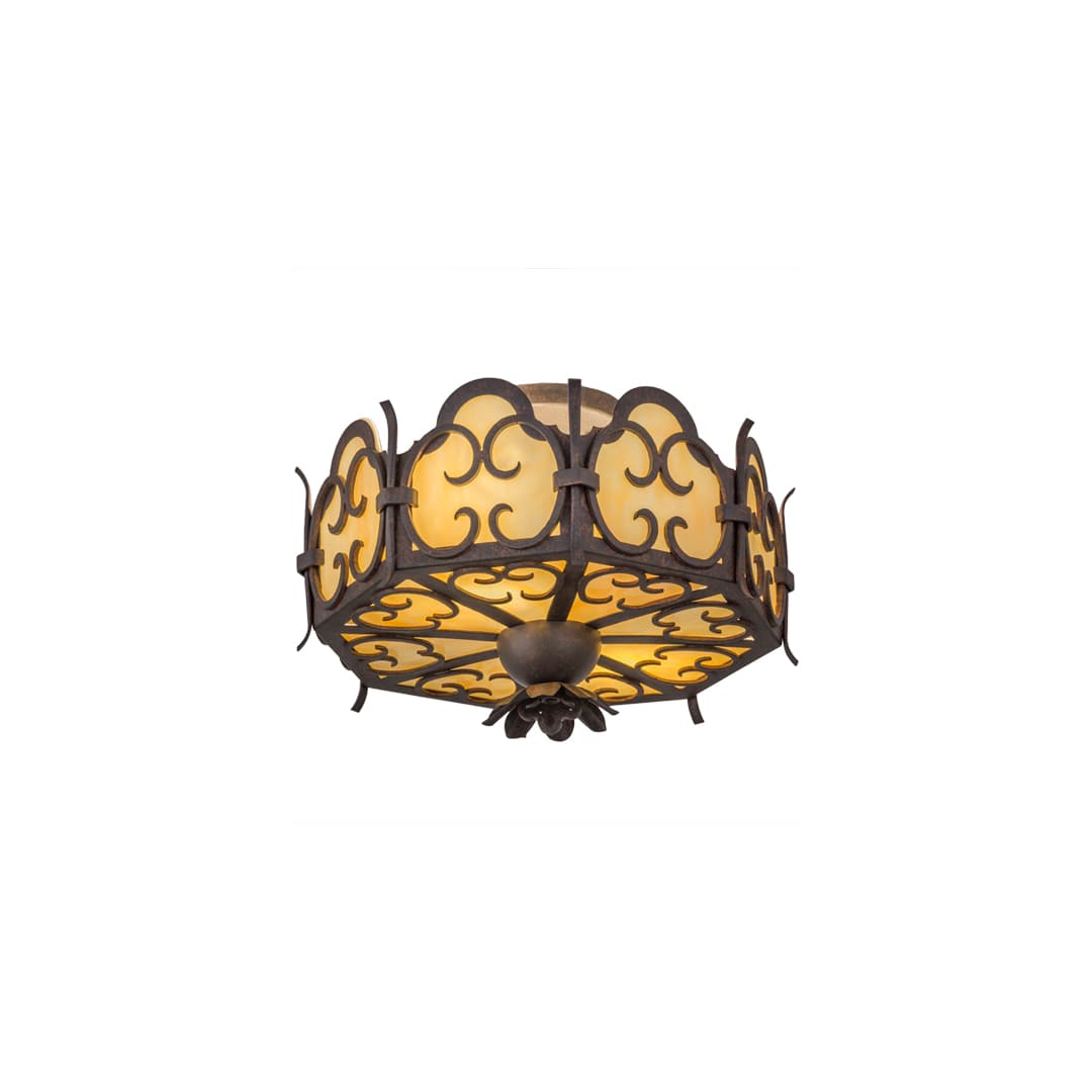 Dramatic elegant scroll designs are highlighted on 8 side panels and the bottom diffuser of this beautiful fixture, which is featured in stunning Beige art glass. The scrolls, decorative accents, floral finial and matching hardware are all featured in an exquisite Cajun Spice finish. Handcrafted in our 180,000 square foot manufacturing facility in Yorkville, New York. This chandelier is available in custom sizes, styles and finishes, as well as dimmable energy efficient lamping options such as LED.