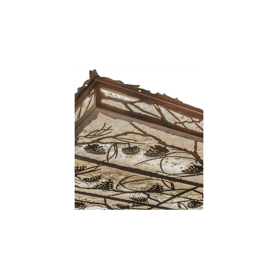 Listen closely. You can almost hear the soft whisper of the pine branches as they dance in the wind. Enjoy the ambiance of soft beautiful light diffused through Silver Mica, which features stunning pinecone and tree branch designs in a Rust with Wrought Iron finish. The pendant is handcrafted by Meyda artisans in Yorkville, New York at the foothills of the Adirondack Mountains. This energy-efficient fixture uses dimmable LEDs and operates on just 129 watts, an equivalent to nearly 1,000 watts of standard incandescent bulbs. Engineered for a long life, no re-lamping is required.