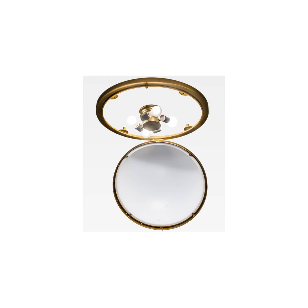 A clean transitional look for residential and commercial spaces, Commerce is designed with a contemporary Statuario Idalight shade and enhanced with Buttered Brass finished hardware. Handmade in the USA. Custom styles, sizes and designs available. Dimmable energy efficient lamping options such as LED are offered.