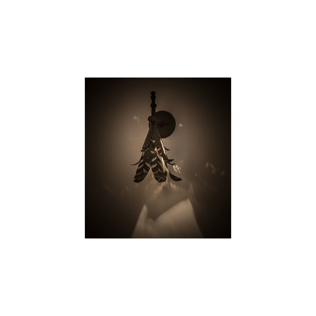 Like walking through a lush tropical garden overlooked by a palm tree, the palm branch is a symbol of peace, eternal life, and victory as it was awarded to winning Olympic athletes in ancient Greece and Rome. This luxurious wall sconce is custom crafted with curved layers of perforated steel palm leaves. Handcrafted by highly skilled artisans in Meyda Tiffany's 180,000 square foot manufacturing facility in Yorkville, New York. The sconce is UL and cUL listed for damp listings.