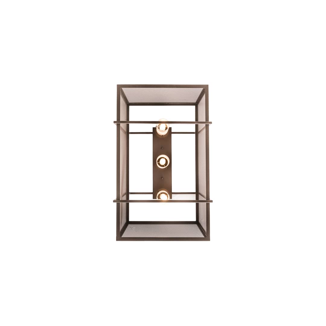 Discover a unique architectural look and industrial lighting design that is fresh and stylish. Kitzi Golpe features a dramatic caged frame that reveals 3 Fleshtone Idalight Cylinders illuminating from within. The solid metal hardware, frame and grill are featured in a stunning Cafe Noir finish. The alluring fixture is ideal for illuminating counters, islands, conference rooms, entryways and other residential and commercial spaces. Handcrafted by highly skilled artisans in the USA, this dramatic fixture is offered in a myriad of custom lamping options such as LED, as well as sizes, designs and finishes.