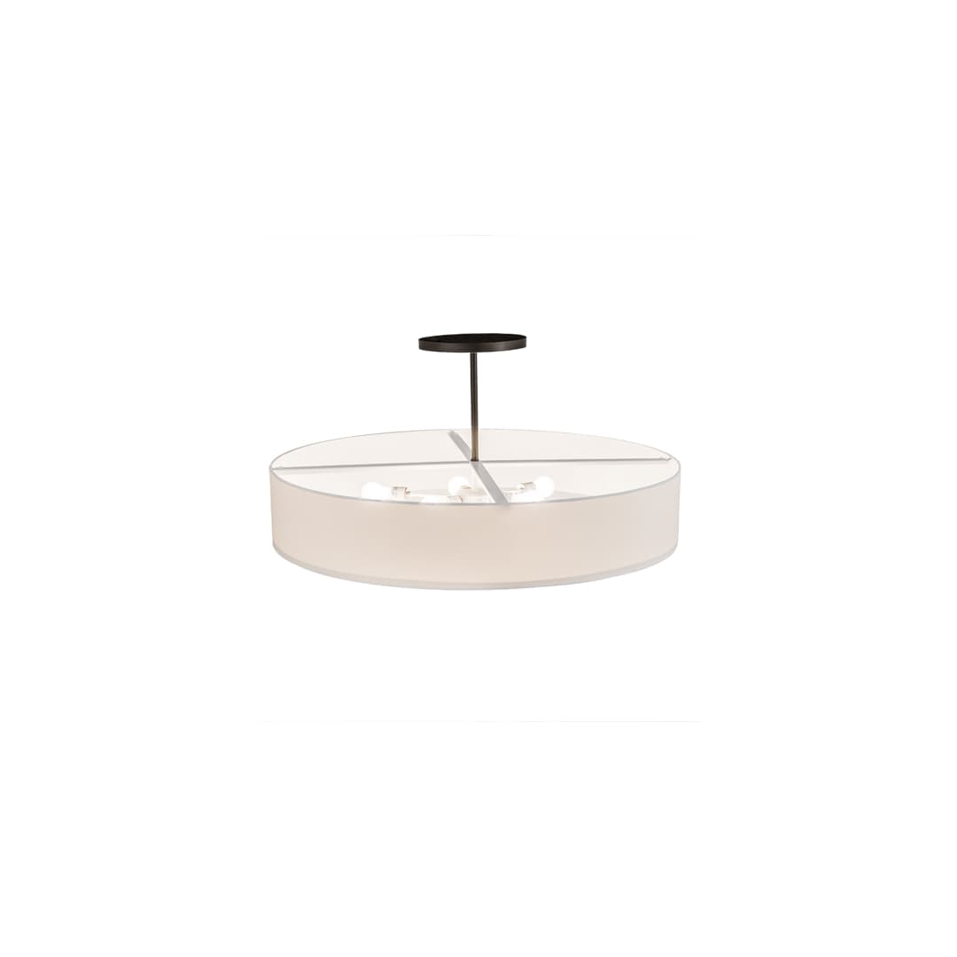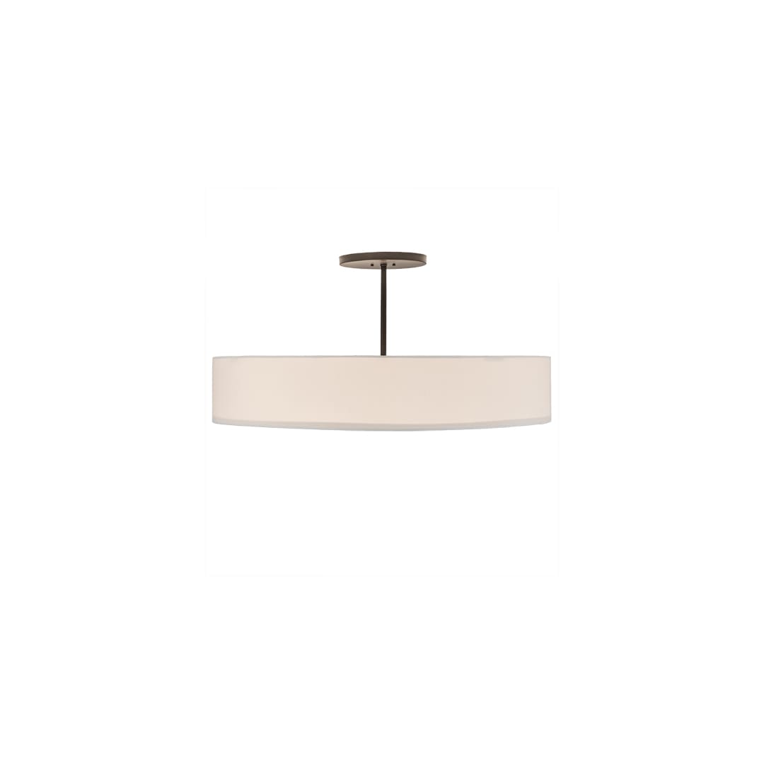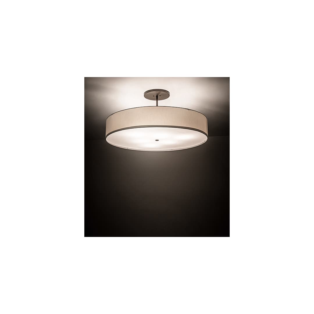 Designed with a curved profile and a clean architectural look, this appealing and versatile ceiling fixture defines a sophisticated aesthetic. The refined styled fixture features an Eggshell Textrene shade, which is enhanced with a Statuario Idalight bottom diffuser. and Bronze powder coated hardware. Handcrafted in our 180,000 square foot manufacturing facility in Upstate NY. This transitional fixture is available in a wide range of custom choices including various designs, colors, sizes and dimmable lamping options such as LED. The 42-inch wide ceiling fixture is UL and cUL listed for dry and damp locations, however, we do not recommend installing it in spaces that experience a large amount of moisture due to the fabric shade.
