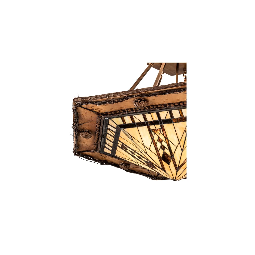Enchanting southwestern styling and an intriguing Native American design reveal the magic and mystery of tribal symbols in stunning art glass and matching hardware. The hexagonal lighting fixture features a Sand Beige and Bark Brown granite glass shade which is framed by an all natural wooden medallion. The hardware is finished with a warm Cinnamon Coffee metallic powder coat. Handcrafted by highly skilled artisans in our 180,000 square foot manufacturing facility in Upstate NY. Custom styles, colors, and sizes available, as well as dimmable energy efficient lamping options.