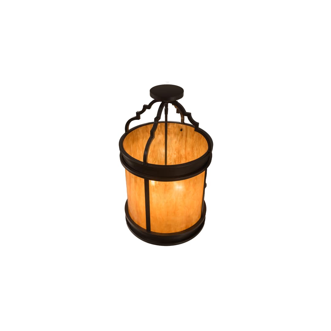 A strikingly handsome yet elegant ceiling fixture design complemented with the luster of appealing metal hardware. Stunning Maduro Idalight diffuses beautiful ambient light through this lantern which is complemented with a frame, decorative accents and hardware featured in a Timeless Bronze finish. Handcrafted by highly skilled artisans in our 180,000 square manufacturing facility in Yorkville, New York. Diffuser colors, metal finishes and fixtures sizes can be customized to meet your needs.