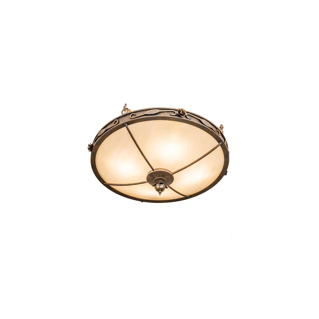 A stunning updated look on a timeless design. An Ancient European scrolled motif is highlighted on the trim of this stunning ceiling fixture which features a Creme Carrare Idalight shade. The fixture is enhanced with sturdy detailed hardware and a finial featured in a French Bronze finish. The Arabesque fixture is ideal for hallways, living spaces and other rooms in both residential and commercial environments. This elegant fixture is handcrafted by highly skilled artisans in our 180,000 square foot manufacturing facility in Yorkville, New York. Options include custom sizes, styles, and colors.