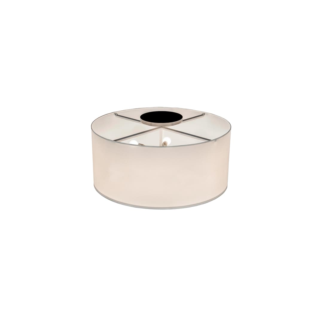 Designed with a curved profile and a clean architectural look. This appealing and versatile ceiling fixture defines a sophisticated aesthetic. This Cilindro ceiling fixture features a White Textrene shade which is enhanced with a Statuario Idalight bottom diffuser. The hardware is offered in a Nickel powder coat finish. Custom crafted by highly skilled artisans in our 180,000 square foot manufacturing facility in Yorkville, NY. Diffuser colors, sizes and metal finishes can be customized to meet your needs. UL and cUL listed for dry and damp locations however we do not recommend installing it in spaces that experience a large amount of moisture due to the fabric shade.