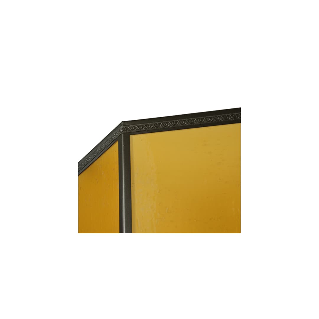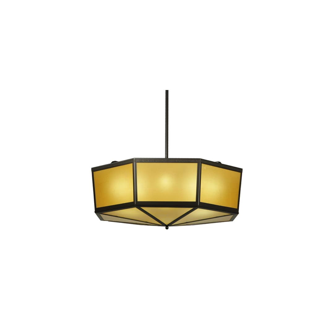 A stunning geometric styled ceiling fixture destined to make an eye-catching centerpiece in any of your rooms. Amber Art Glass panels are enhanced with matching bottom diffusers for an elegant soft presentation of ambient glare-free light. The shade is complemented with a Timeless Bronze finish. The Eltham Semi-Flushmount is featured in our American made, American designed handcrafted Arts & Crafts Lighting Collection. Manufactured in Yorkville, New York.