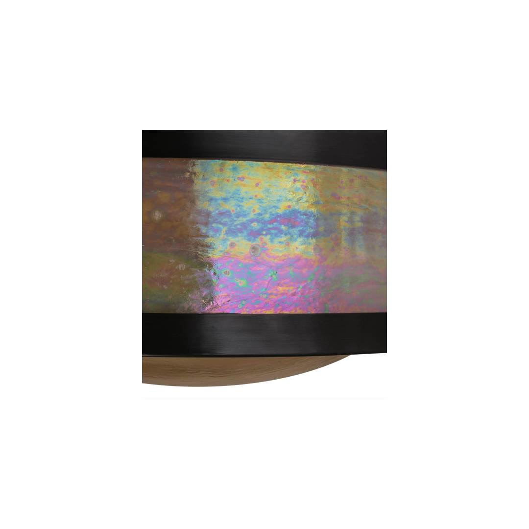 This handsome American Craftsman style inverted semi flush pendant has a the simple lines of the Mission style. The fixture, handcrafted in the USA by Meyda artisans, is finished in Craftsman Brown and has Iridized Beige glass panels.