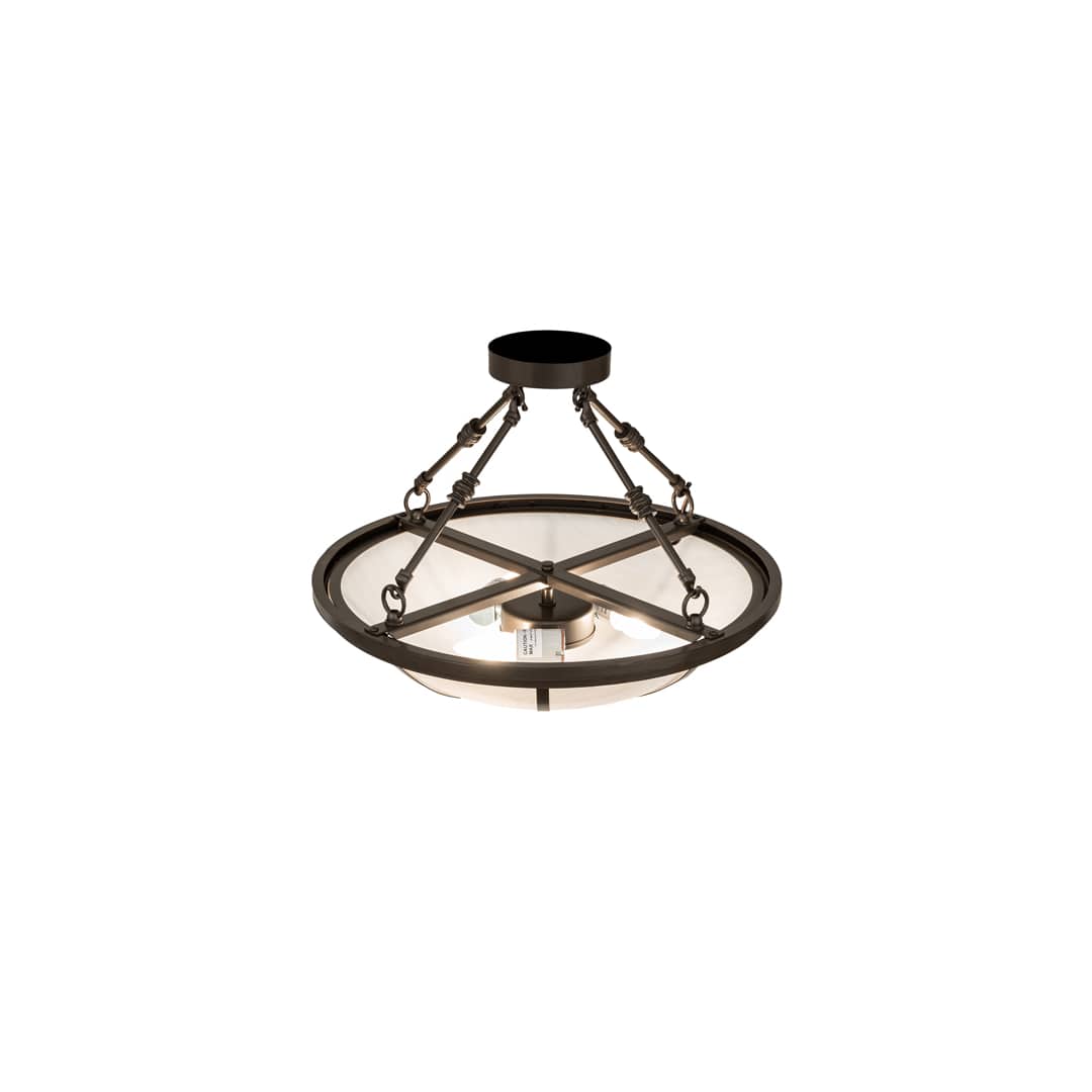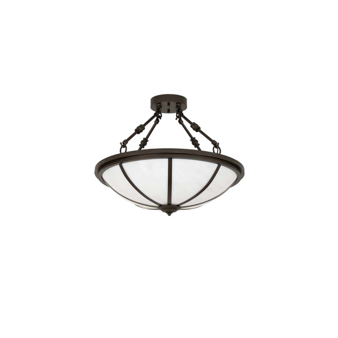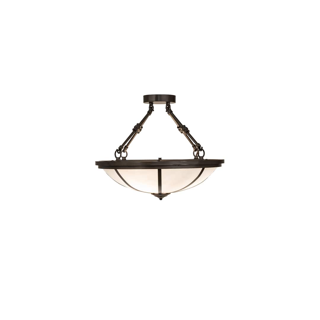 Bring a stunning transitional look into your home or commercial space. Designed with a cool contemporary White Art Glass Shade which is enhanced with handsome Bronze finished hardware. Perfect for ambient illumination in living rooms, lobbies, conference rooms and other residential and commercial spaces. The Commerce Semi-Flushmount is featured in our American manufactured, American designed, handmade Transitional Lighting Collection. Manufactured in Yorkville, New York.