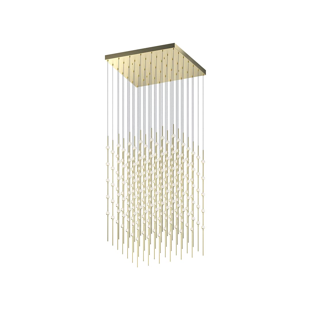 Connected in linear strands, a dramatically suspended array of LED hubs forms the geometry of a bold cube of dazzling luminance. Scaled in two sizes, Cosmic Cube can be ordered in 20" and 30" configurations, or customized for your project.