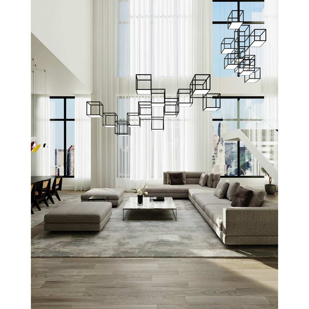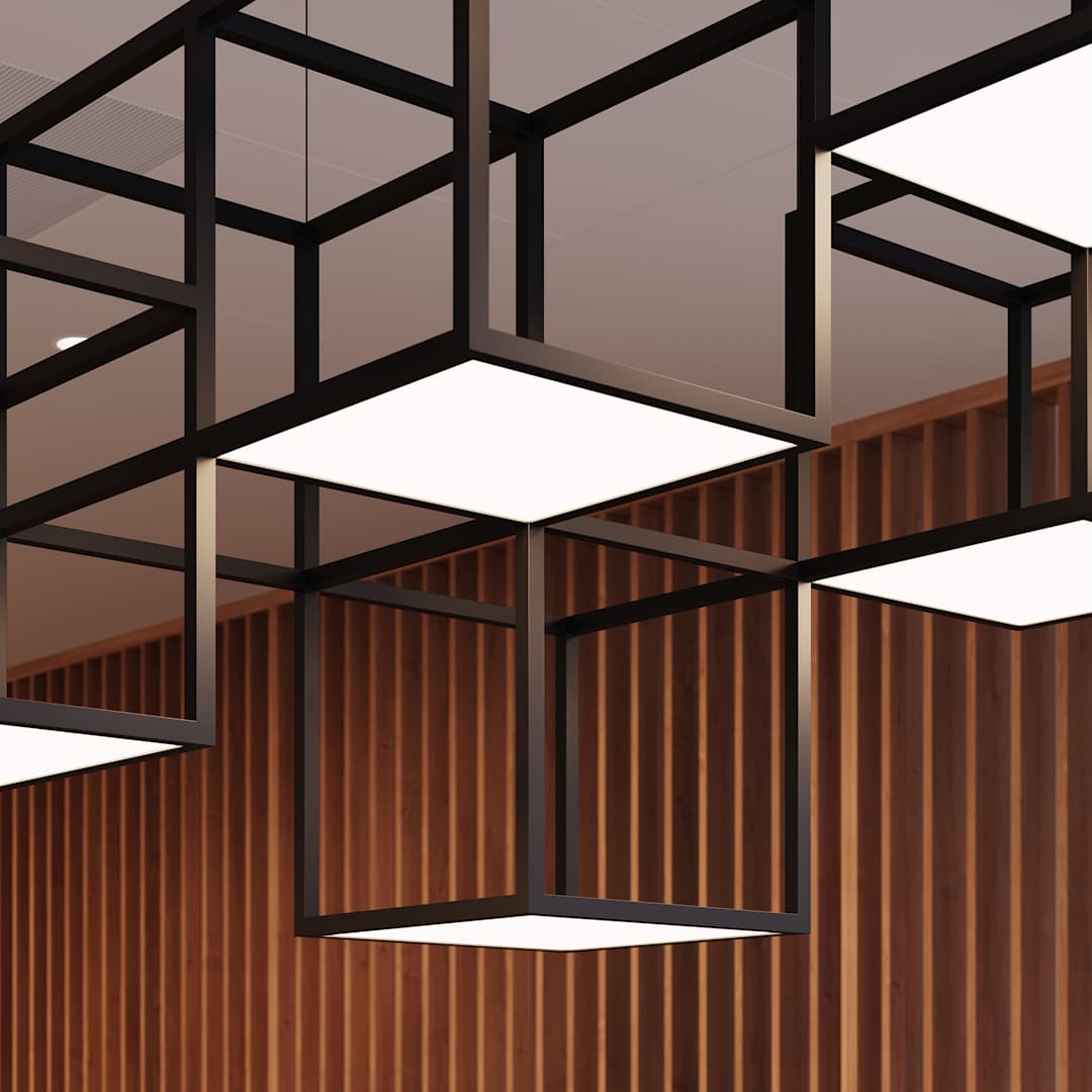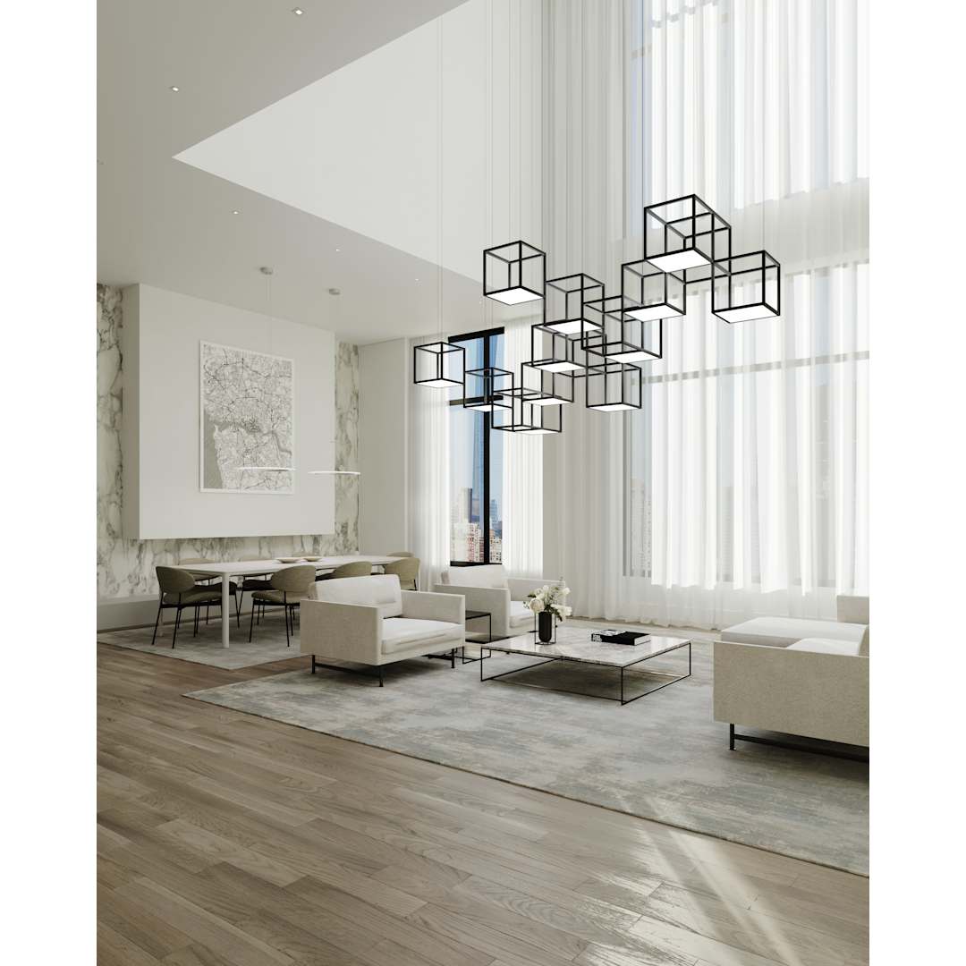 Configured in a strong vertical arrangement, Cubix brings layers of illumination and dramatic sculptural presence to high-ceilinged architectural spaces. Scaled in a narrower vertical formation or configured with broader horizontal sections for increased mass, Cubix provides the opportunity to achieve the scale of both height and volume.