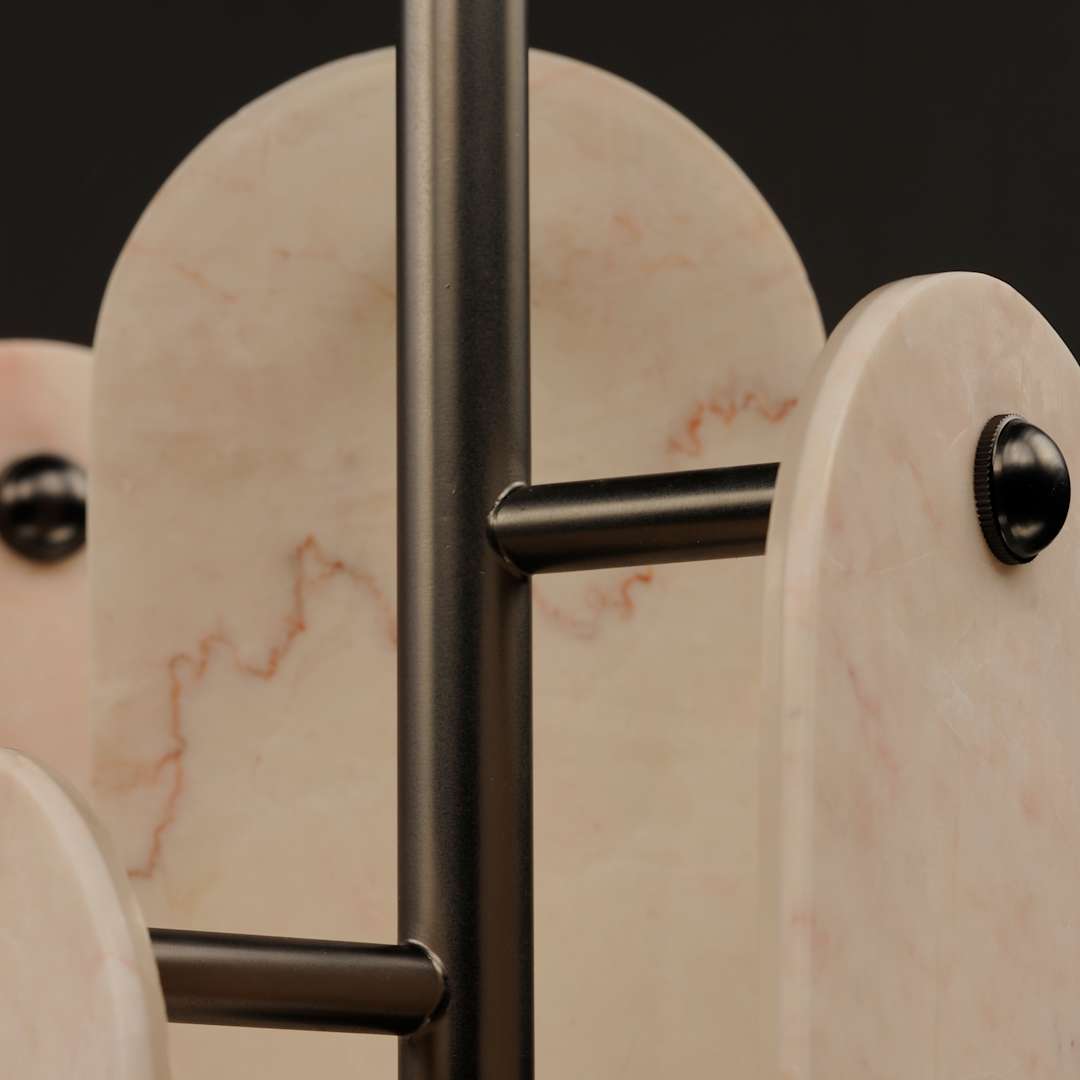 A monument to the beauty of stone, the Megalith collection is constructed using a robust iron stem that branches off to support various panel options. The enduring appeal of the stone's character boosts the luxurious nature of this design.