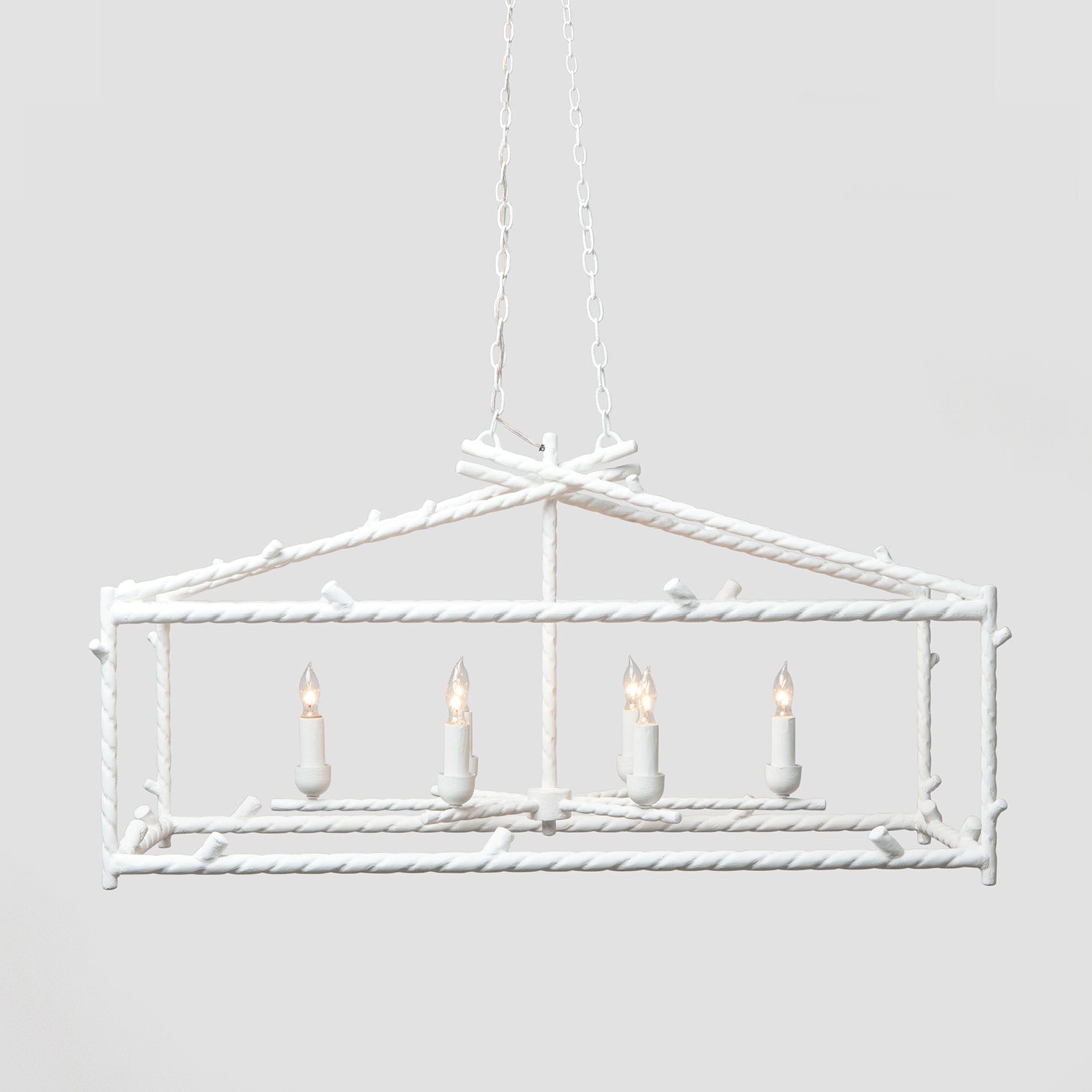 - Fun and quirky, the Trina updates the birdcage chandelier with twig-inspired bars and a sharp white finish.